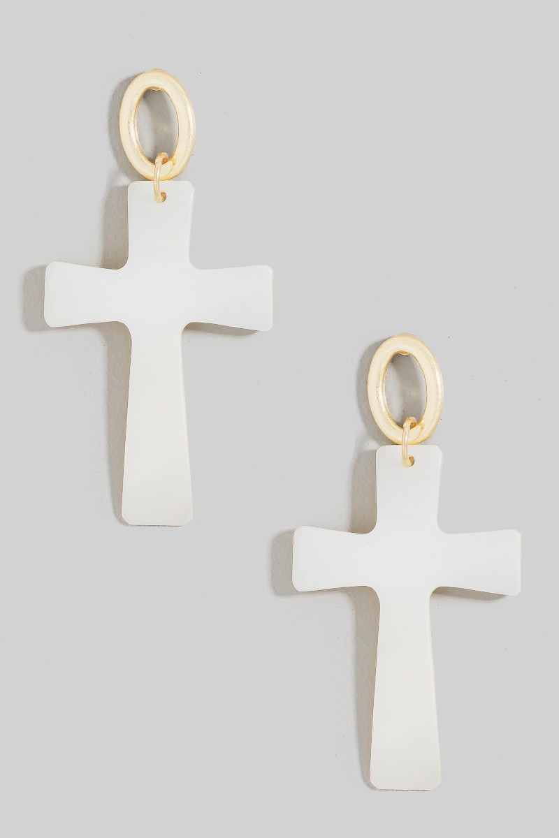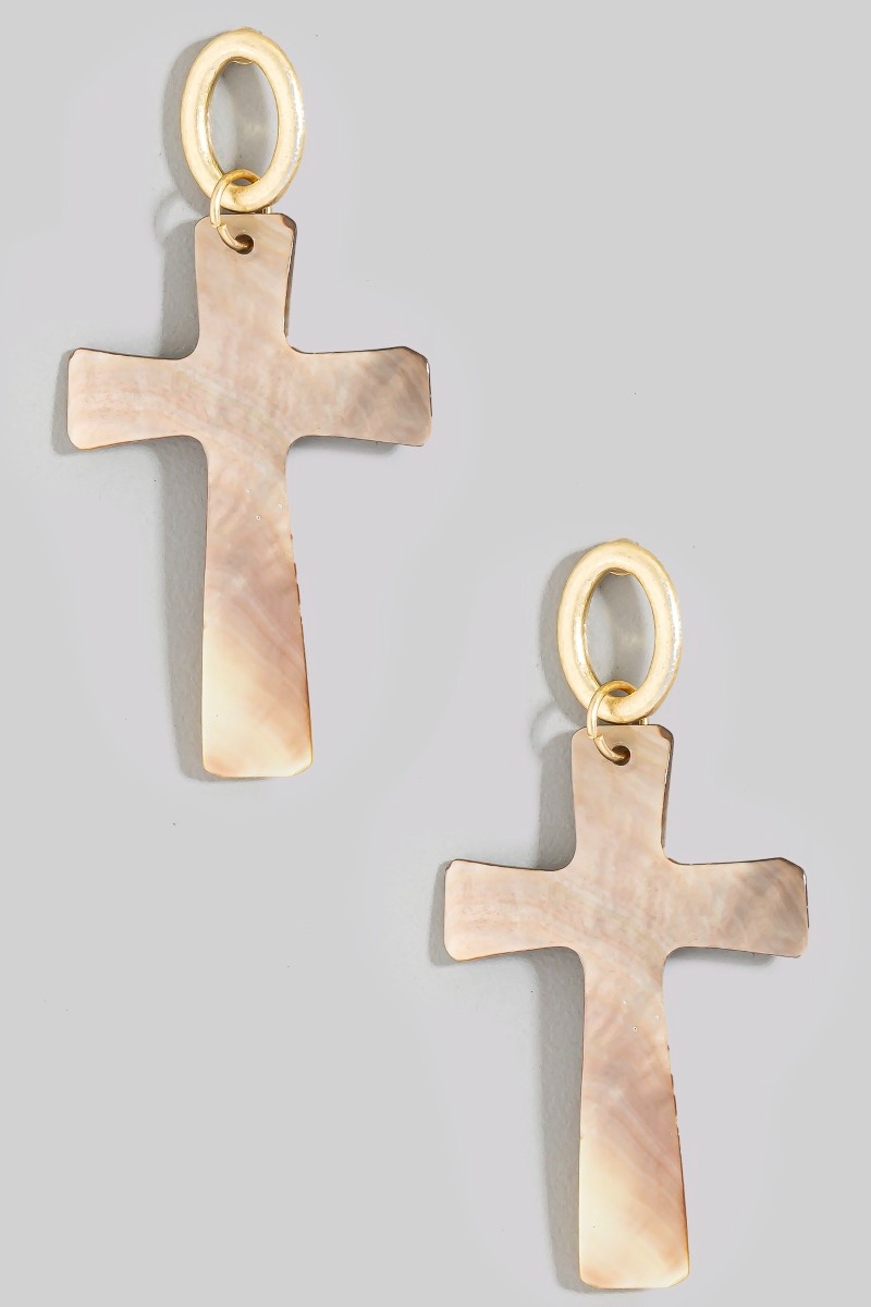 - This pair of drop earrings displays a fashionable seashell cross style. Savor the allure of detailed craftsmanship in this exquisite pair of drop earrings.