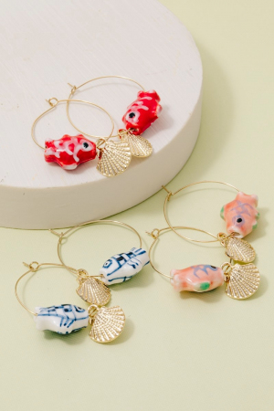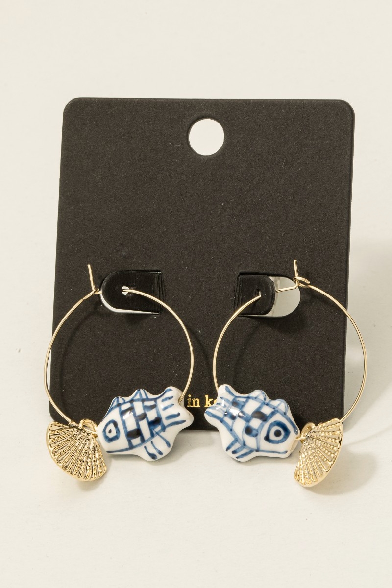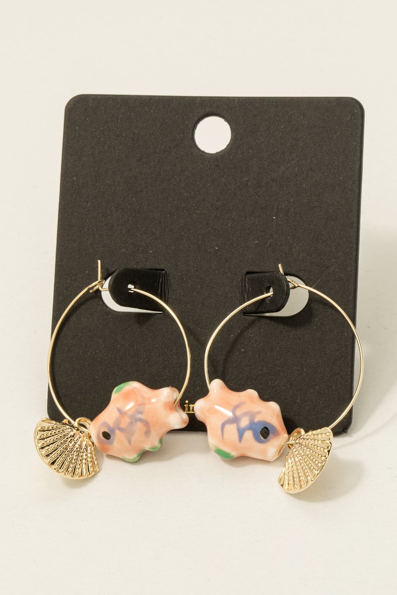 • This pair of hoop earrings adds a modern seashell fish style. Experience refined sophistication with this understated yet stylish piece.