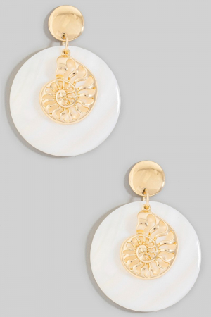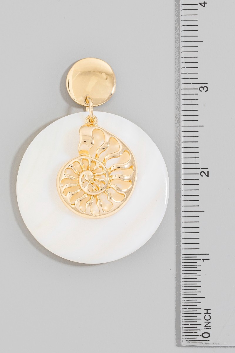 - This pair of dangle earrings brings a stunning spiral shell and large disc stud style. Redefine your look effortlessly with this standout, on-trend piece.