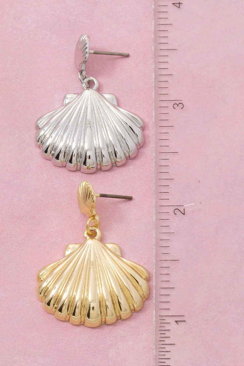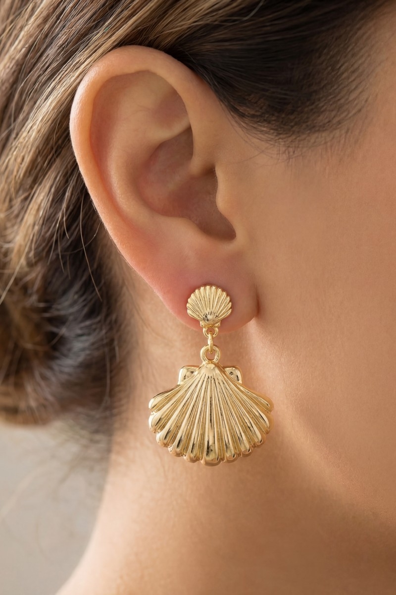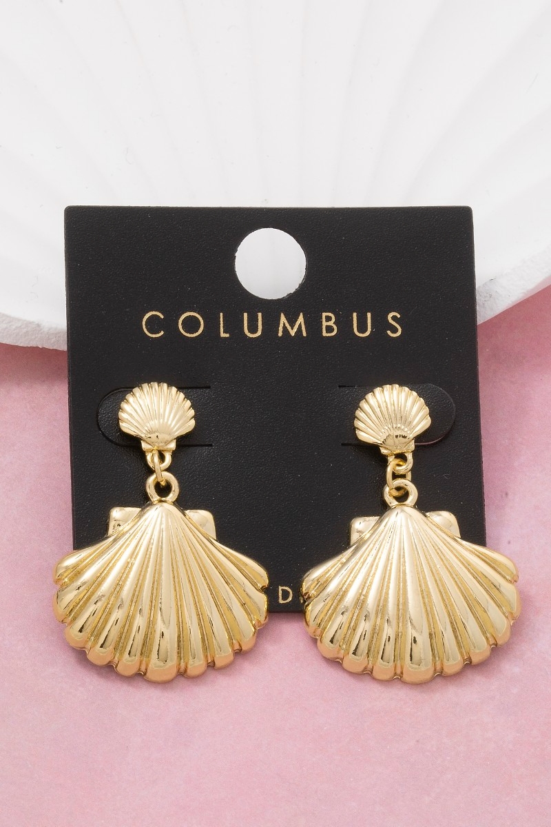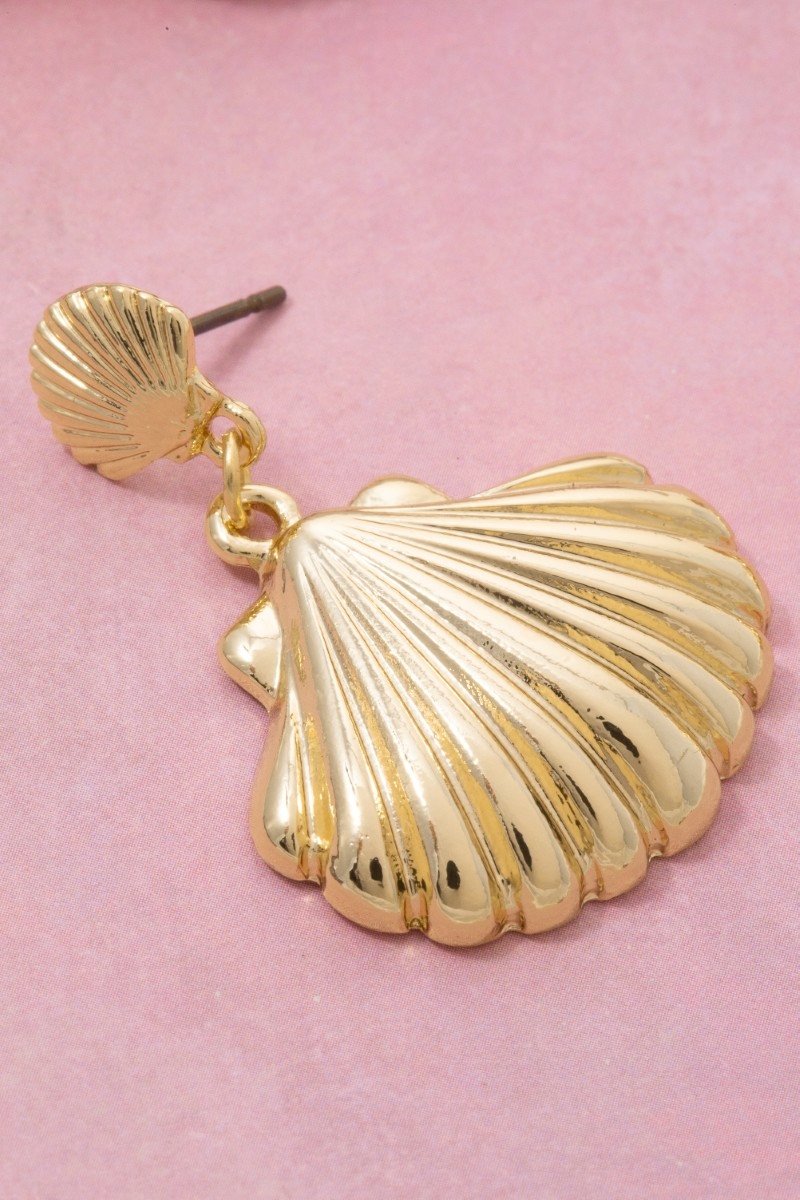 - This pair of dangle earrings adds a modern gold dipped double sea shell stud style. Immerse yourself in the world of understated glamour as this pair of dangle earrings effortlessly exudes timeless appeal.