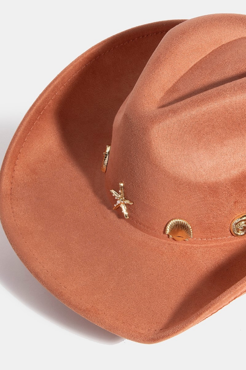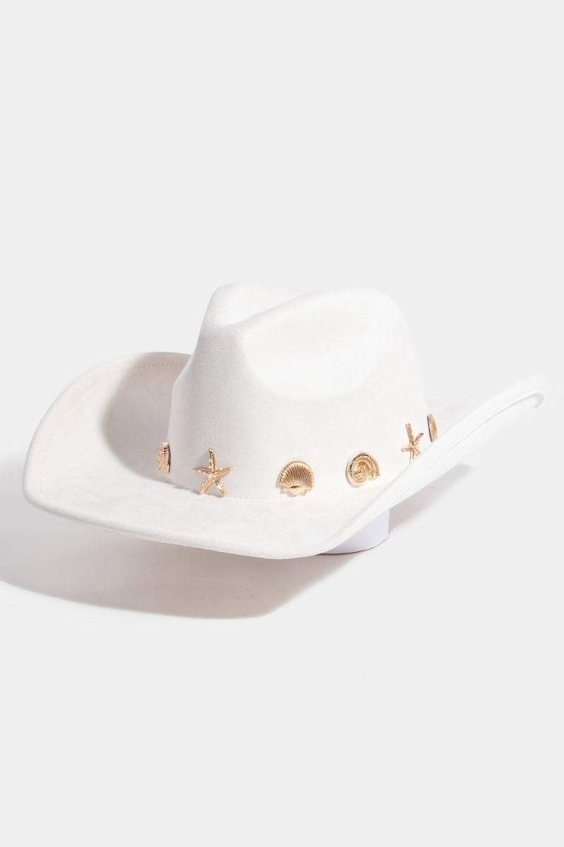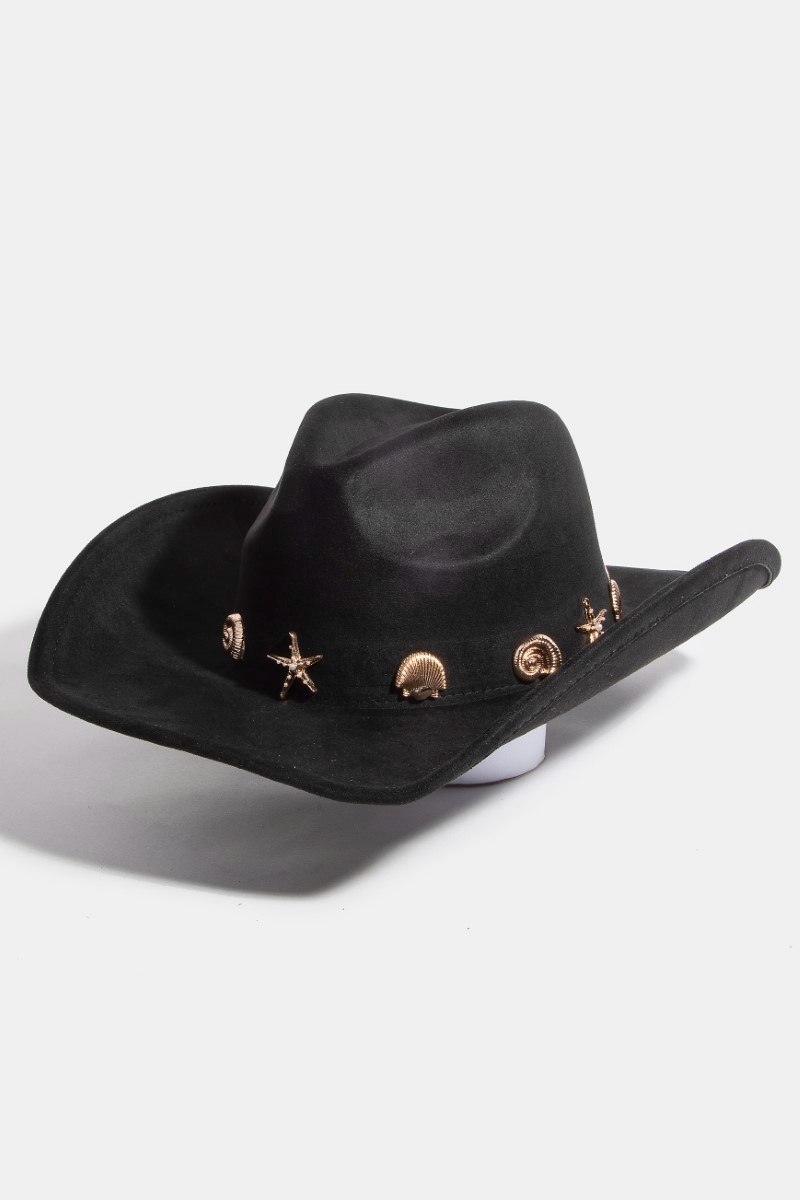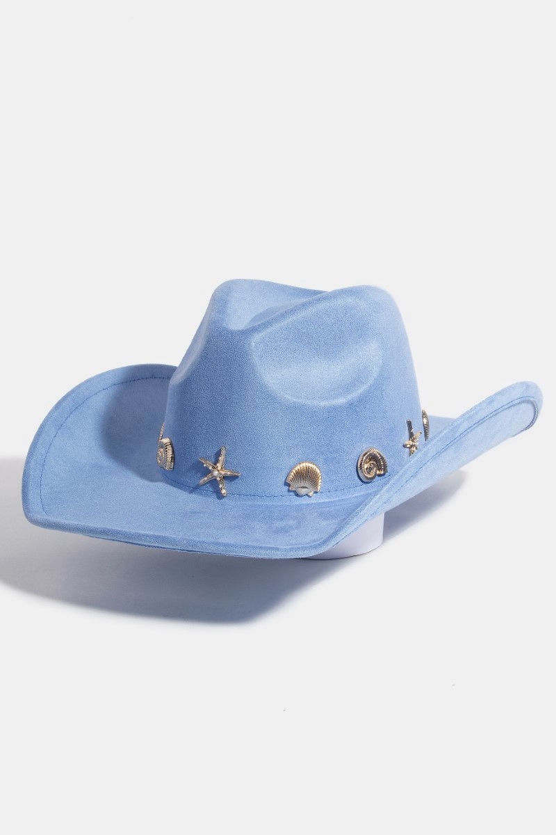 - This cowboy hat brings a luxurious metallic sea life charms western style. Unveil a new dimension of sophistication as this cowboy hat effortlessly enhances the elegance of your ensemble.