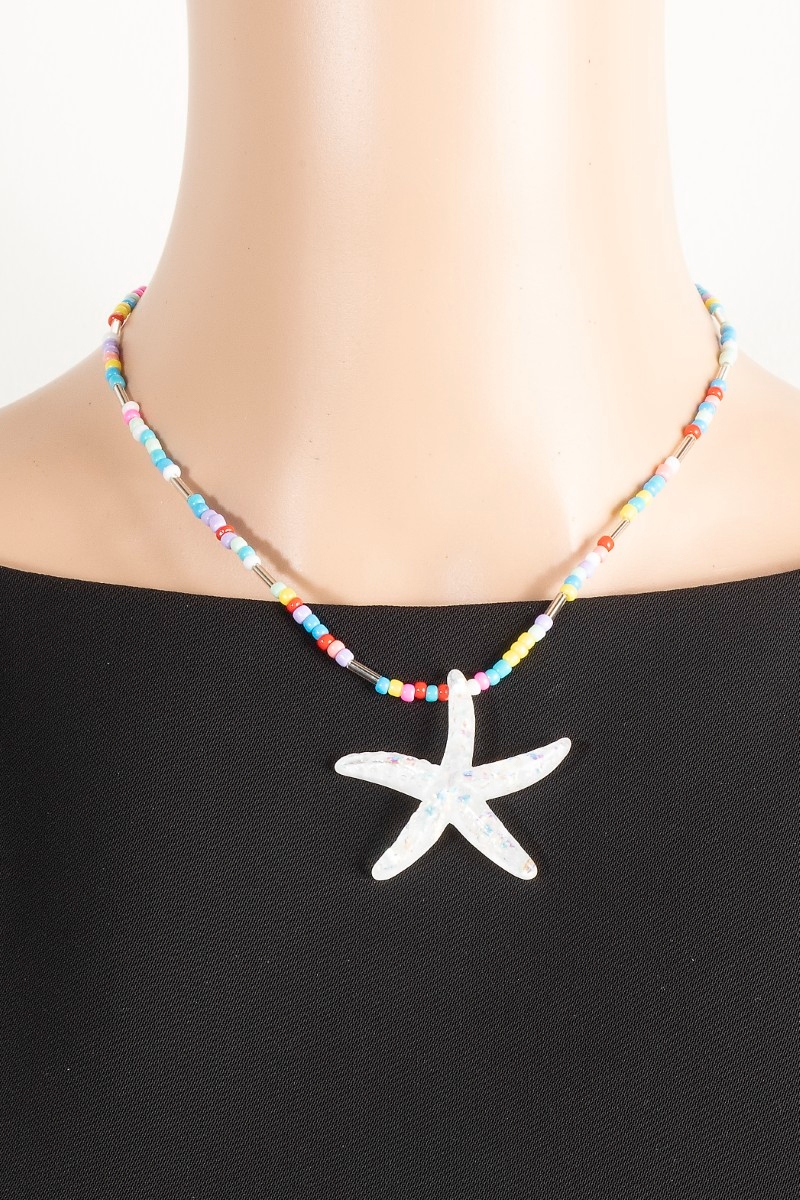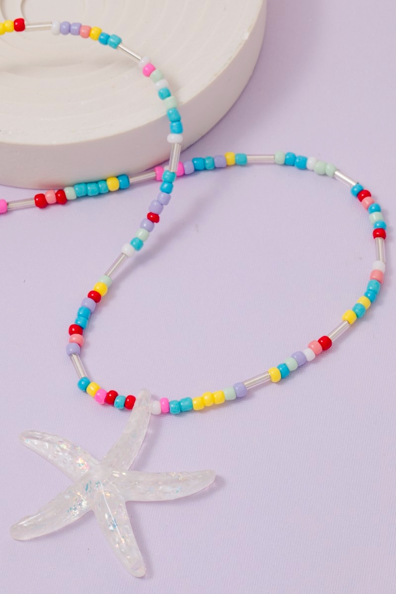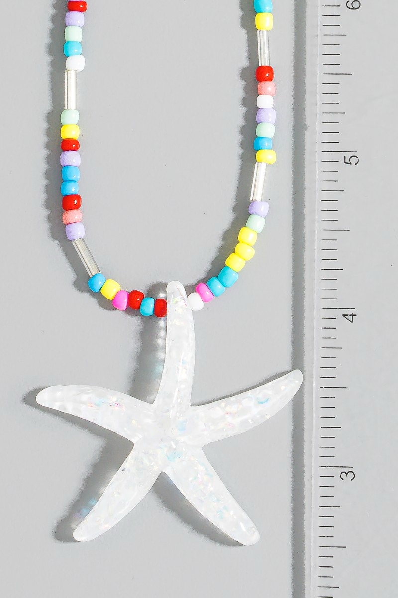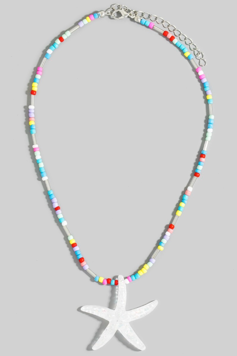 • This necklace brings a luxurious iridescent starfish pendant vibrant beaded style. Celebrate individuality with this necklace that effortlessly expresses your unique sense of style.