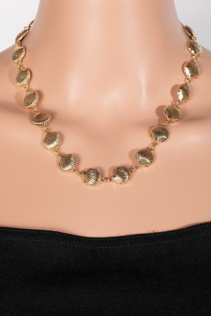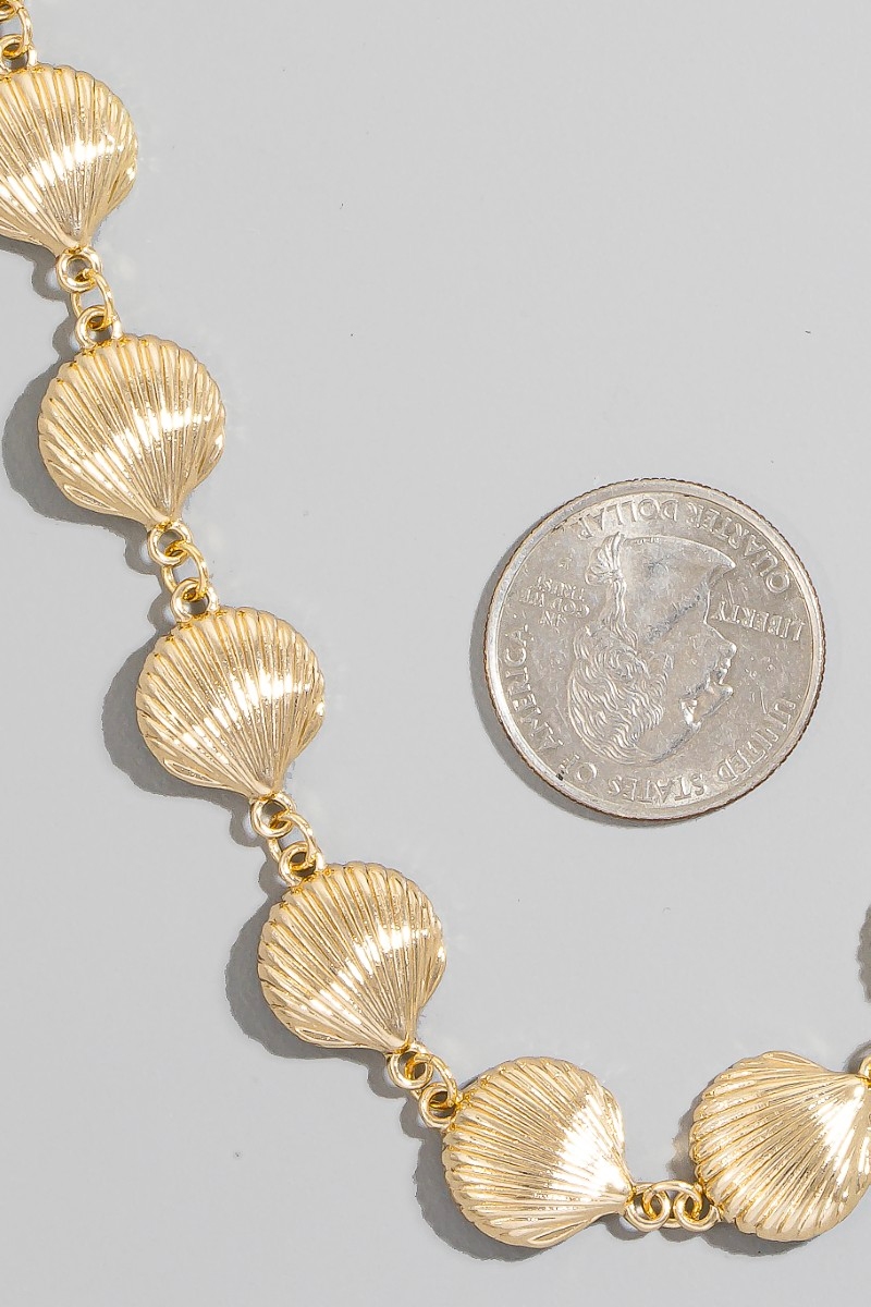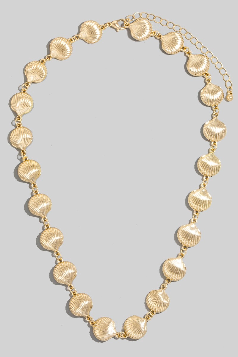 - This necklace adds a modern metallic clam shell chain link style. Experience a burst of creativity in accessorizing as this piece effortlessly sets the tone for your unique style.