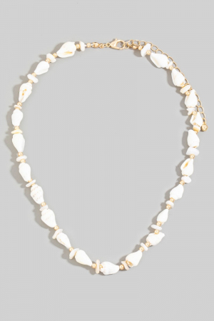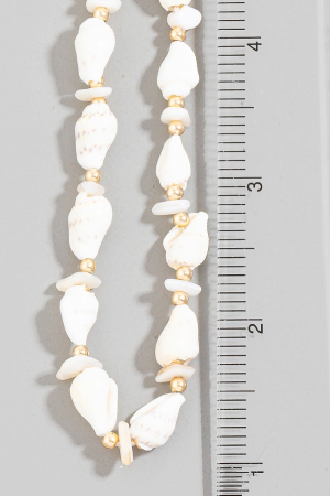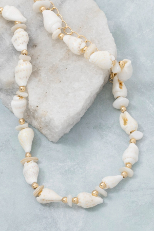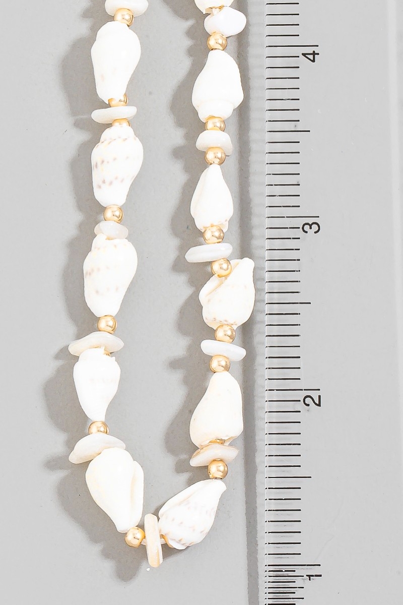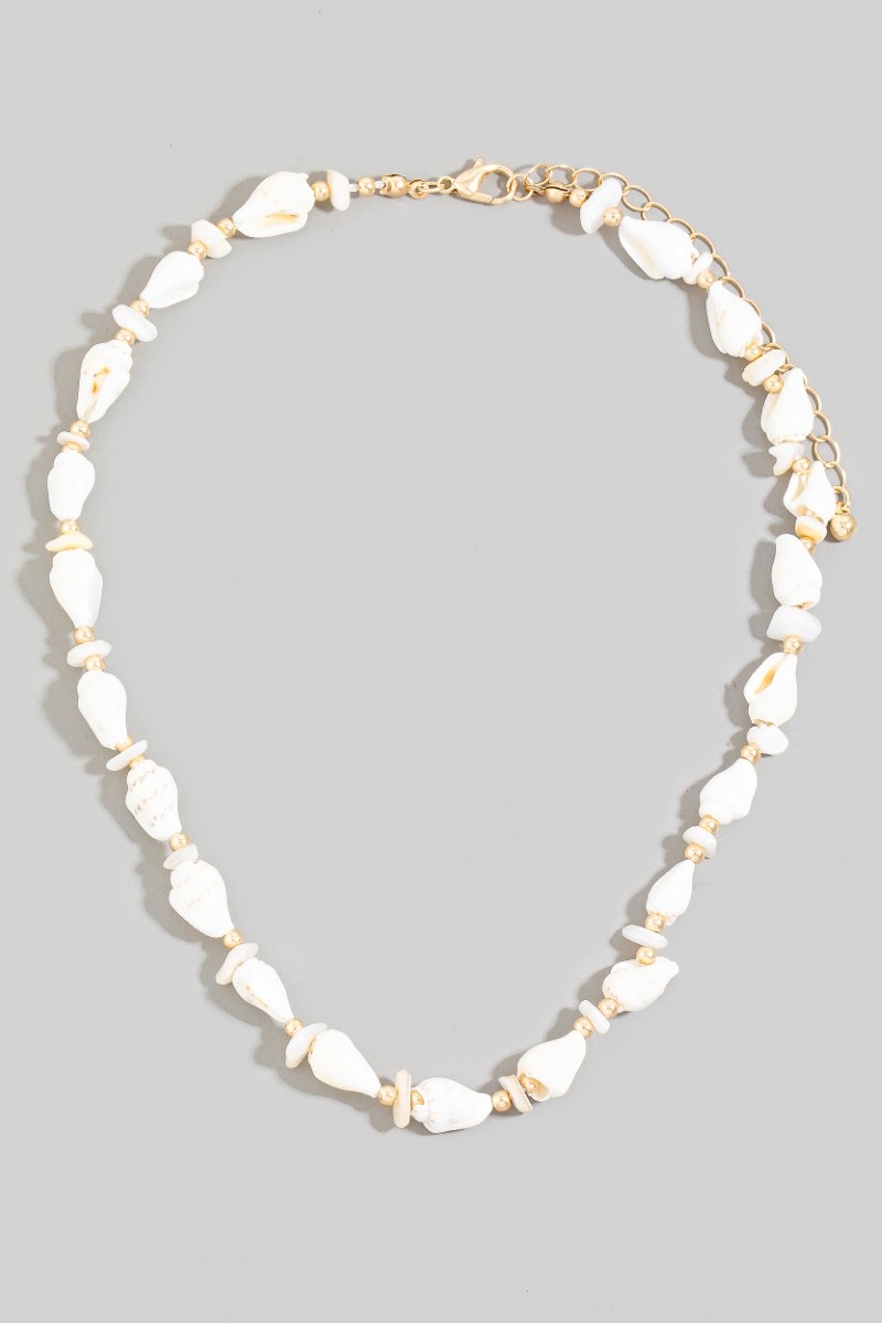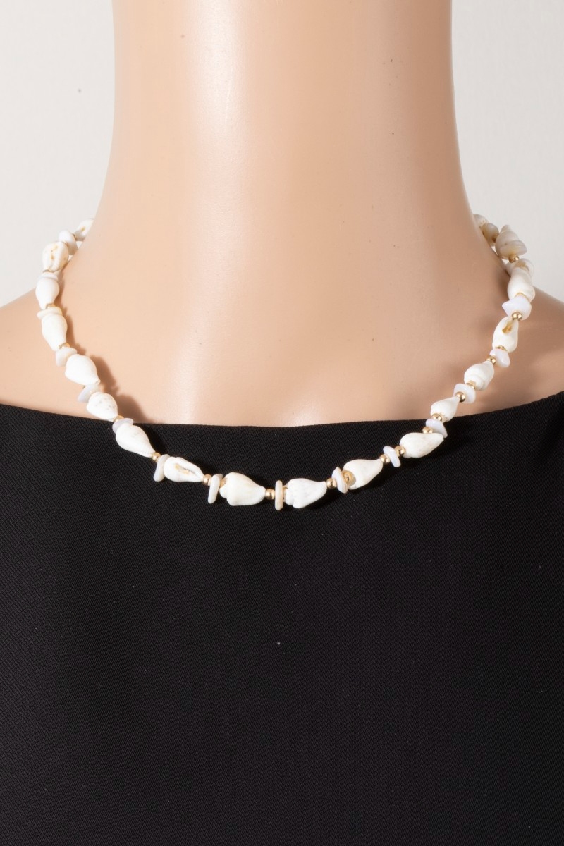 - This necklace features a fashionable mini sea shells beaded style. Delight in the intricate details that make this necklace an essential element in expressing your fashion identity.