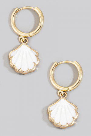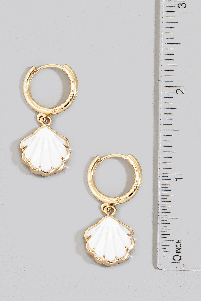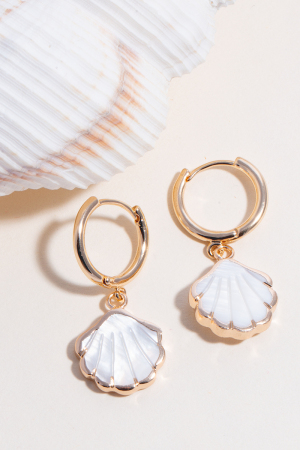 - This pair of hoop earrings features a fashionable mother of pearl shell charm style. Savor the craftsmanship that goes beyond the ordinary, as this pair of hoop earrings effortlessly captivates attention.
