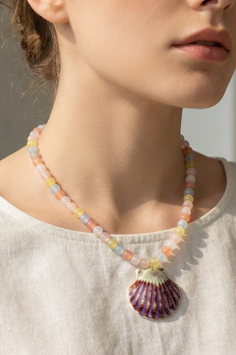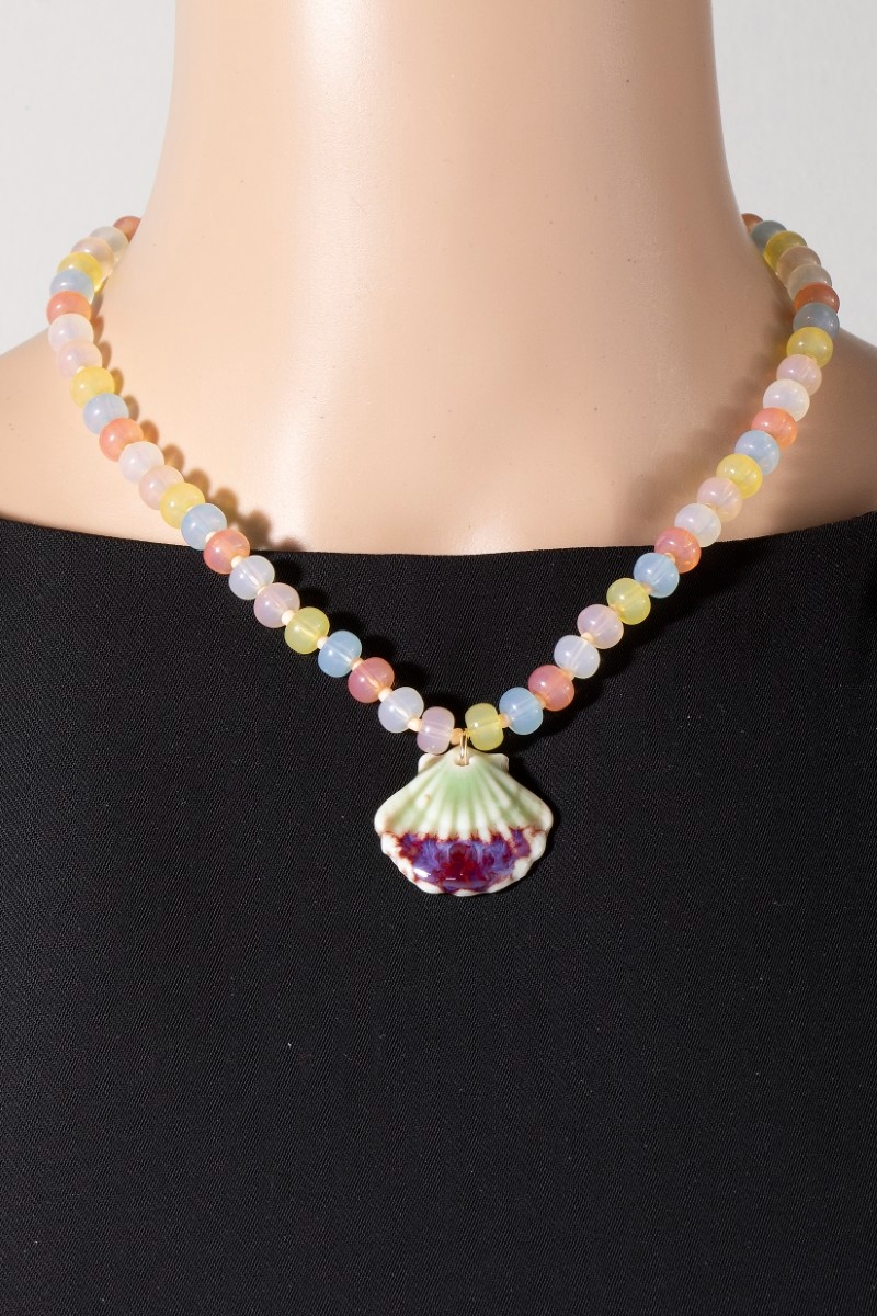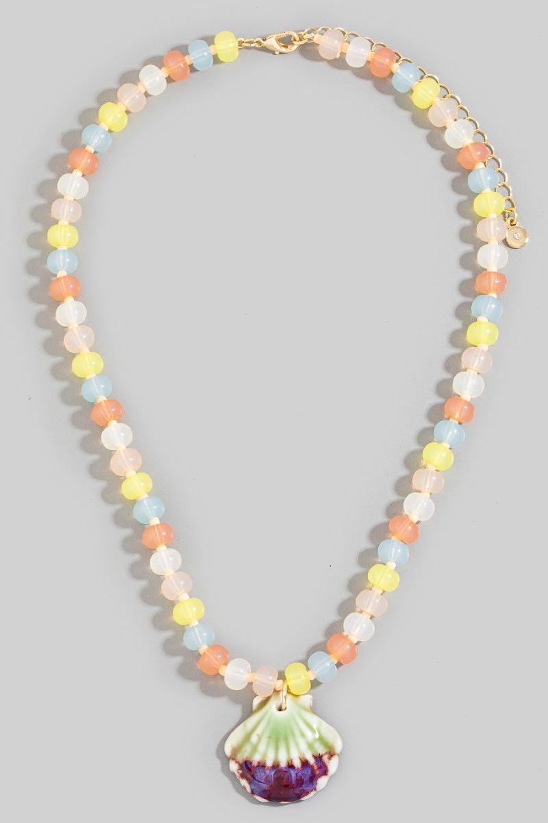 - This pendant necklace introduces a unique ceramic shell pendant colorful beaded necklace style. Witness the perfect fusion of style and functionality as this pendant necklace effortlessly complements your lifestyle.