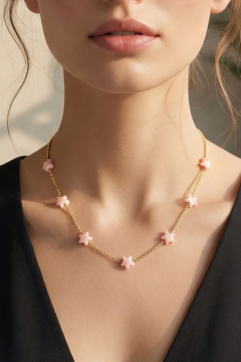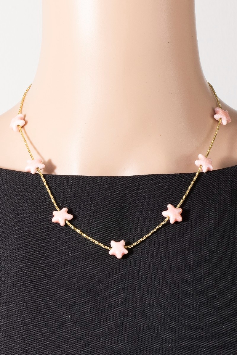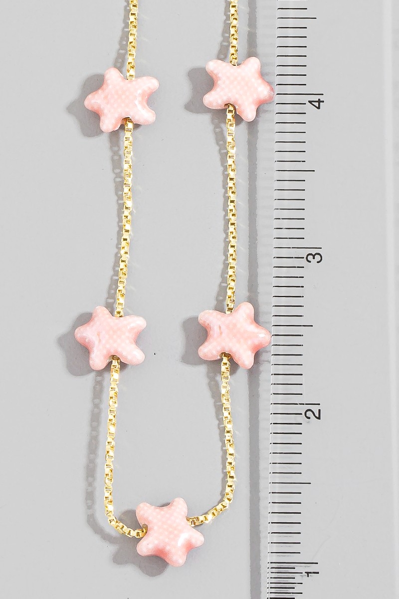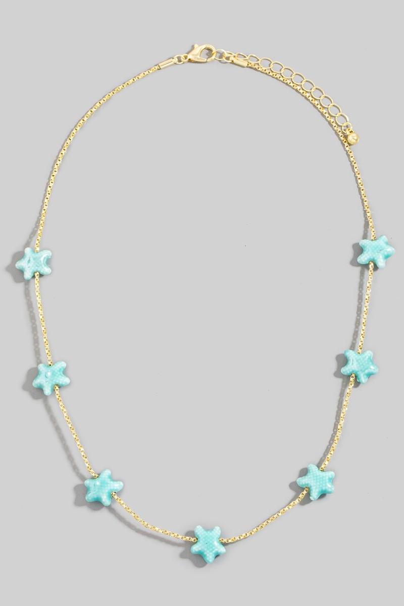 • This chain necklace displays a fashionable ceramic starfish station charms style. Celebrate individual style with this versatile, eye-catching addition.