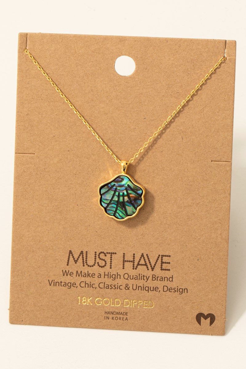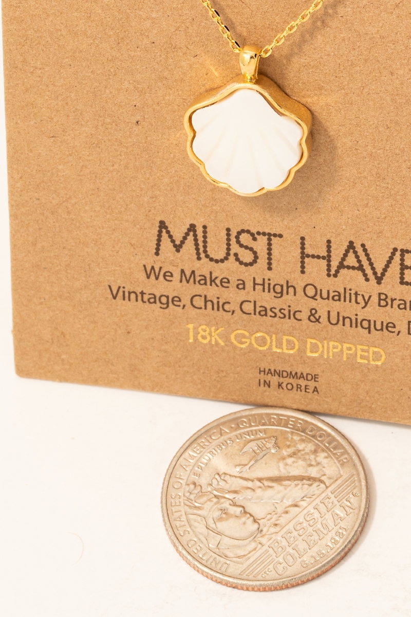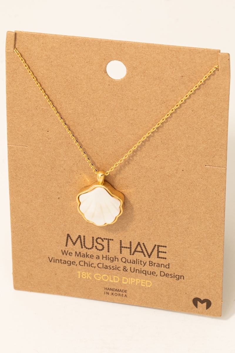 • This trending necklace features a fashionable gold dipped clam shell pendant necklace style. Explore a blend of classic charm and contemporary flair.