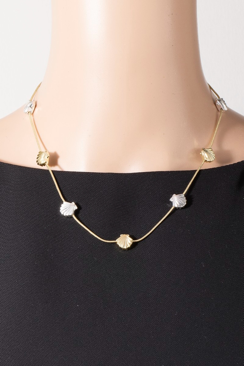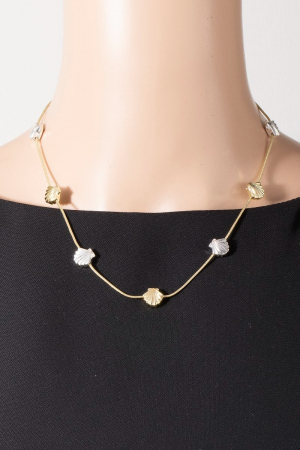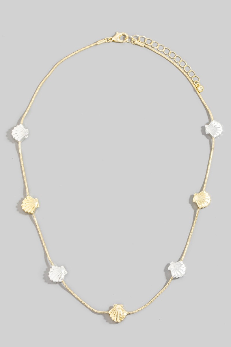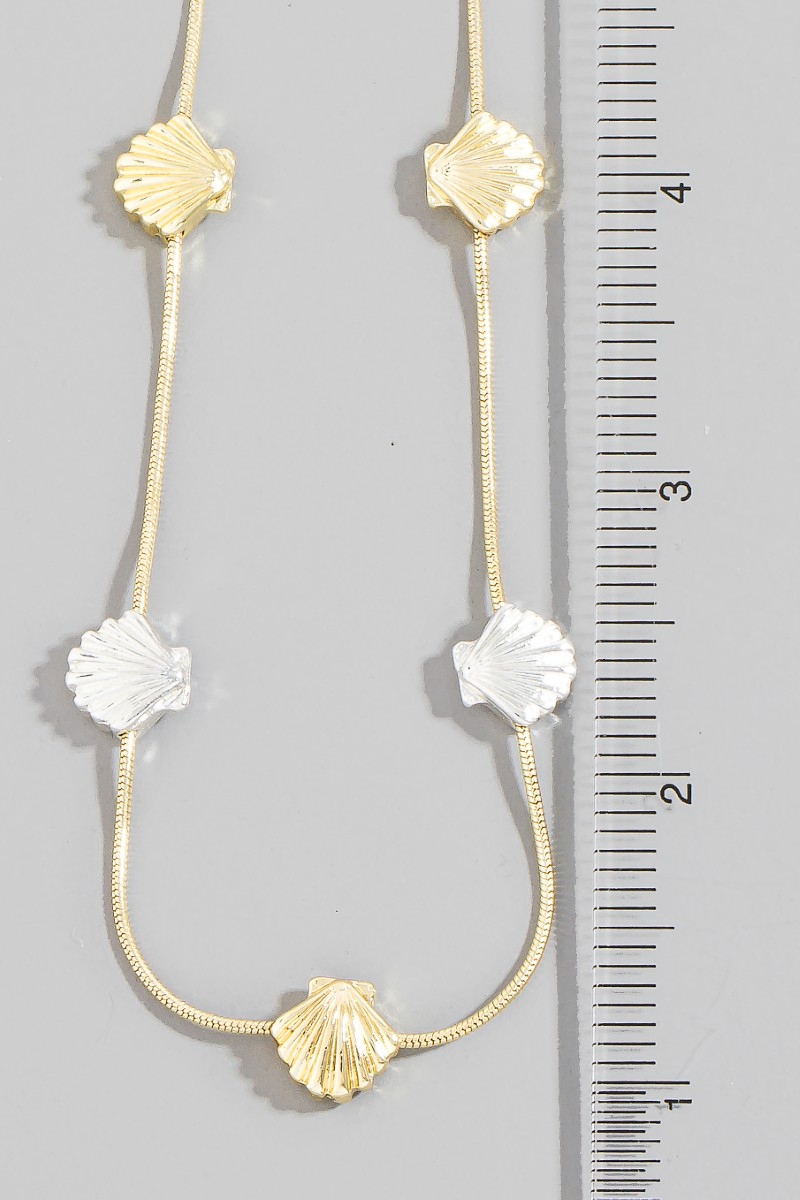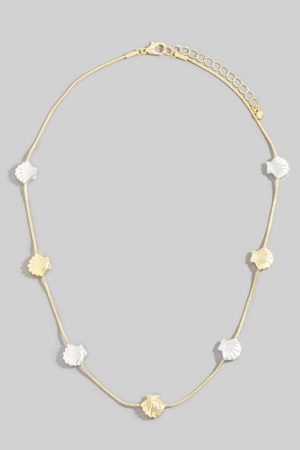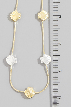 • This chain necklace introduces a stunning mini metallic sea shell station charms style. Celebrate the art of accessorizing with this piece that effortlessly encapsulates modern trends.