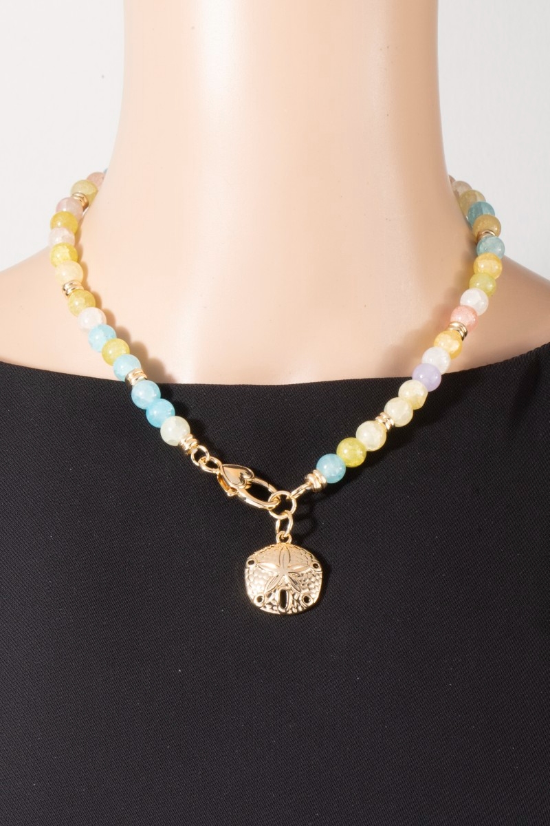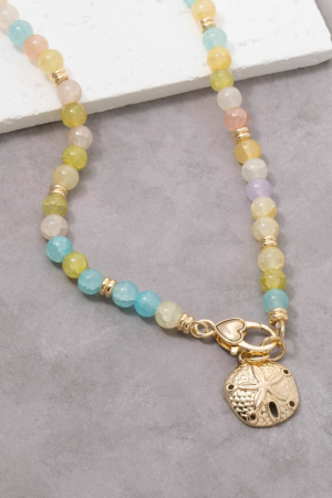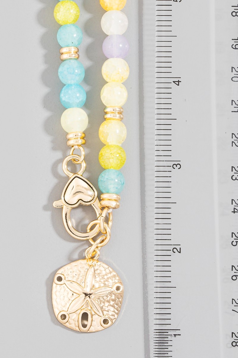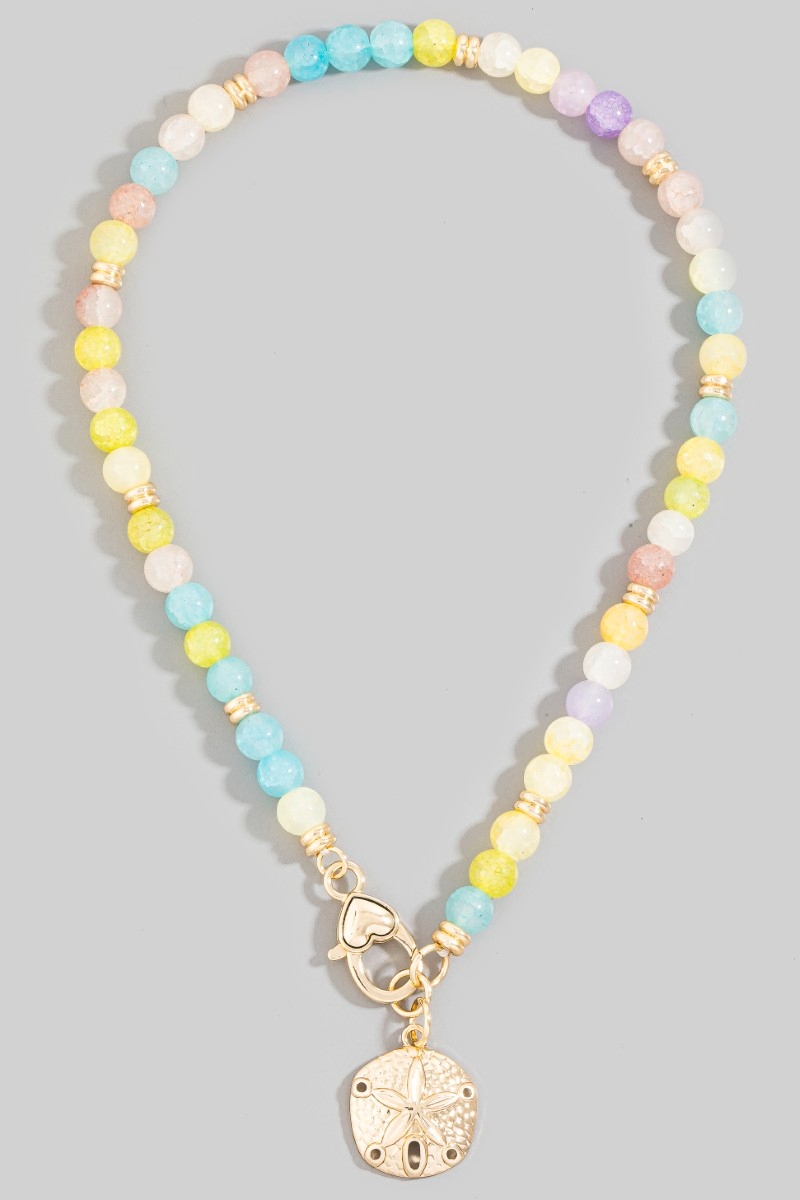 - This necklace displays a vibrant sand dollar charm and heart clasp glass beaded style. Celebrate individuality with this necklace that effortlessly expresses your unique sense of style.