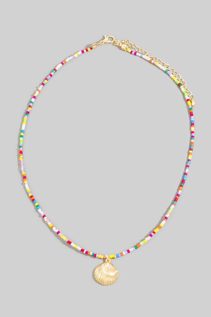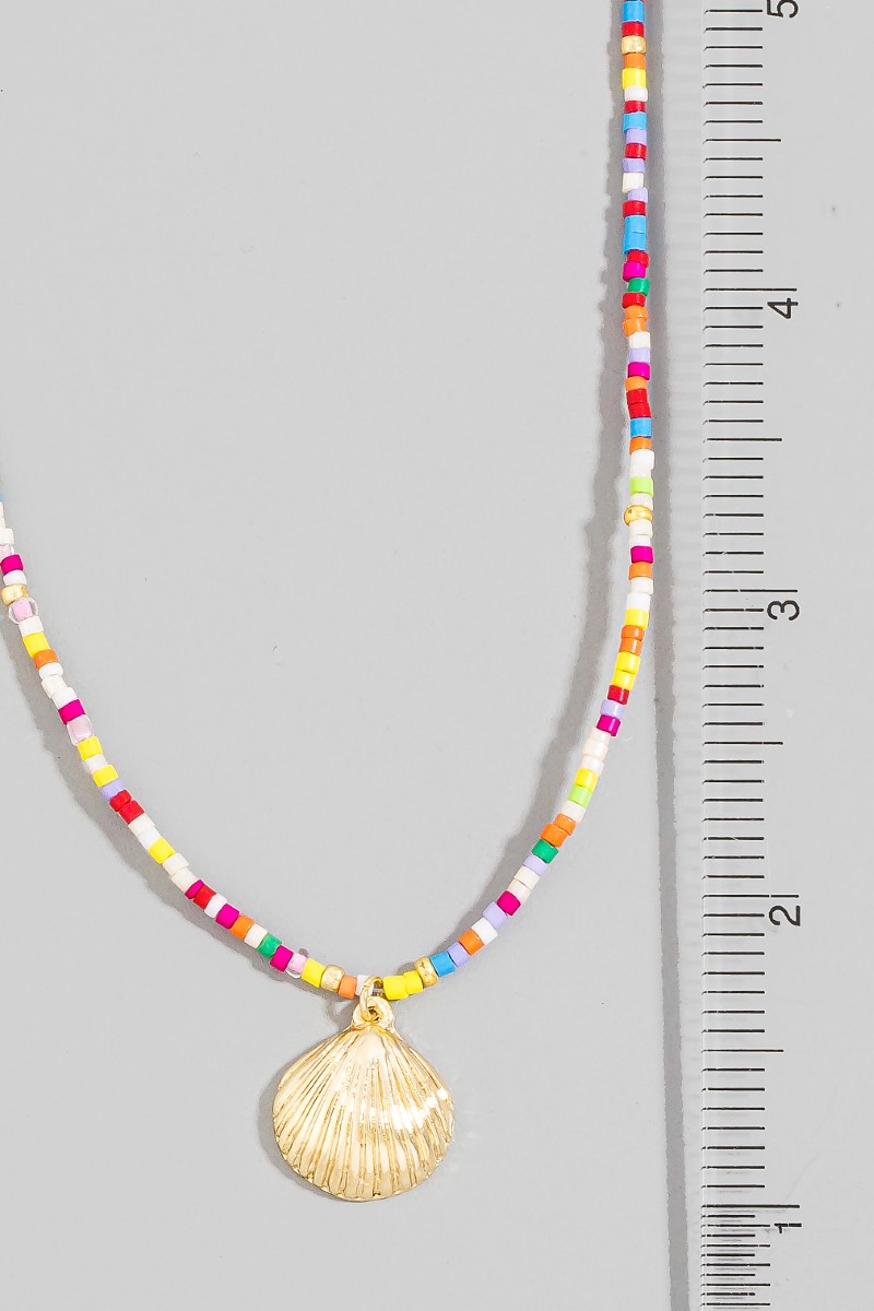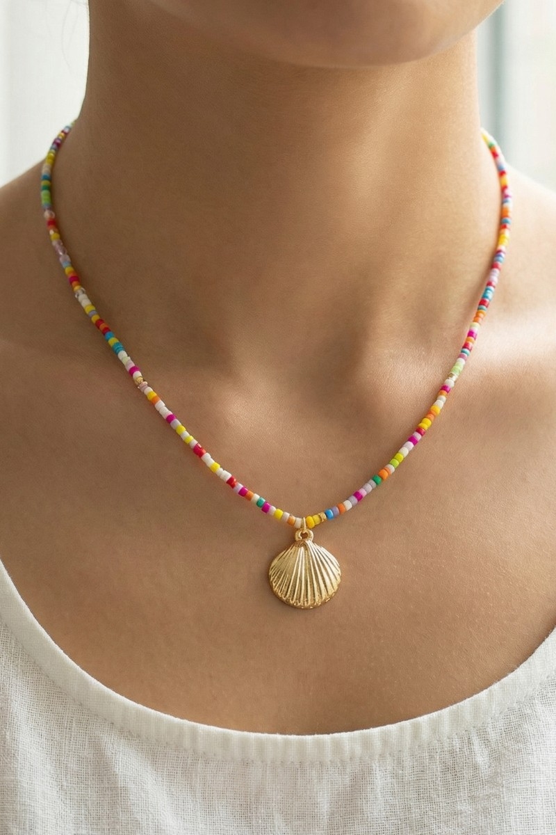 - This pendant necklace showcases a unique sea shell pendant seed beaded necklace style. Savor the allure of detailed craftsmanship in this exquisite pendant necklace.