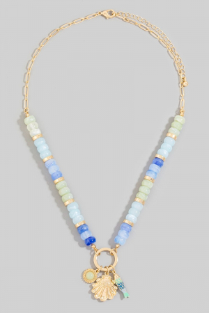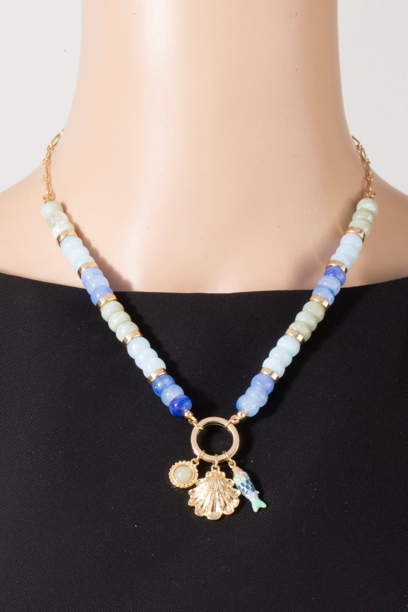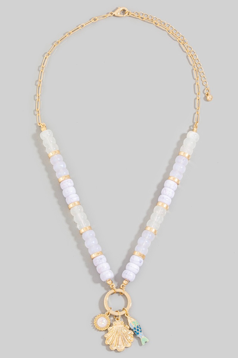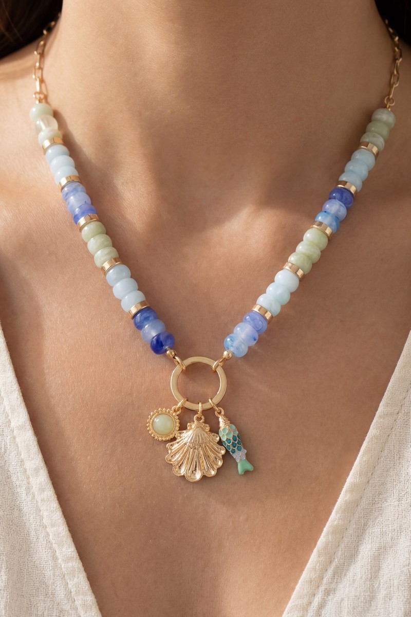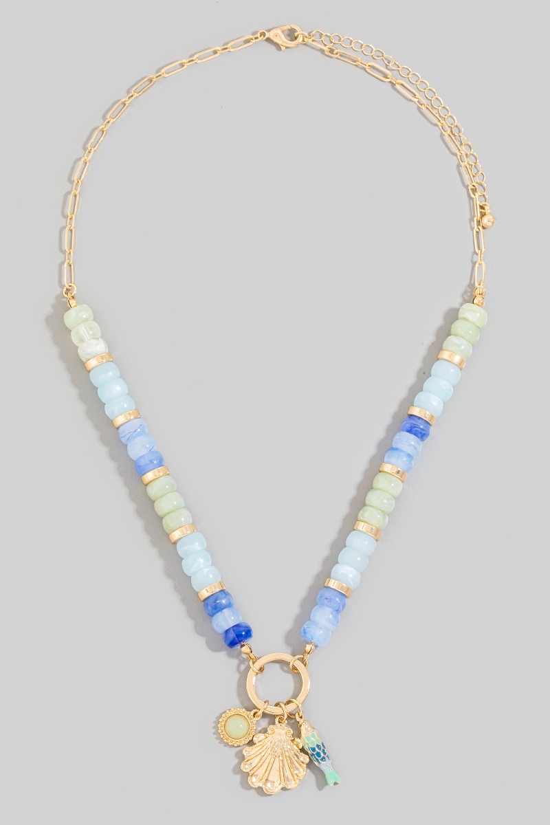 - This necklace introduces a unique sealife charms beaded chain style. Experience the joy of accessorizing with this piece that effortlessly combines versatility and charm.
