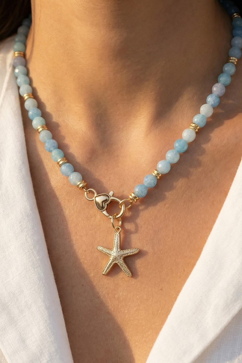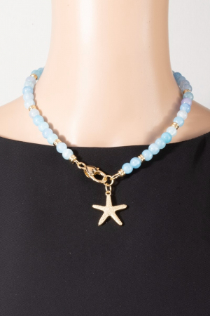 • This necklace introduces a stunning starfish charm and heart clasp glass beaded style. Elevate your ensemble with this necklace that effortlessly captures the essence of refined fashion.