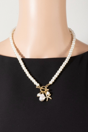 Station Pearl Charms Butterfly Tie Chain Necklace
