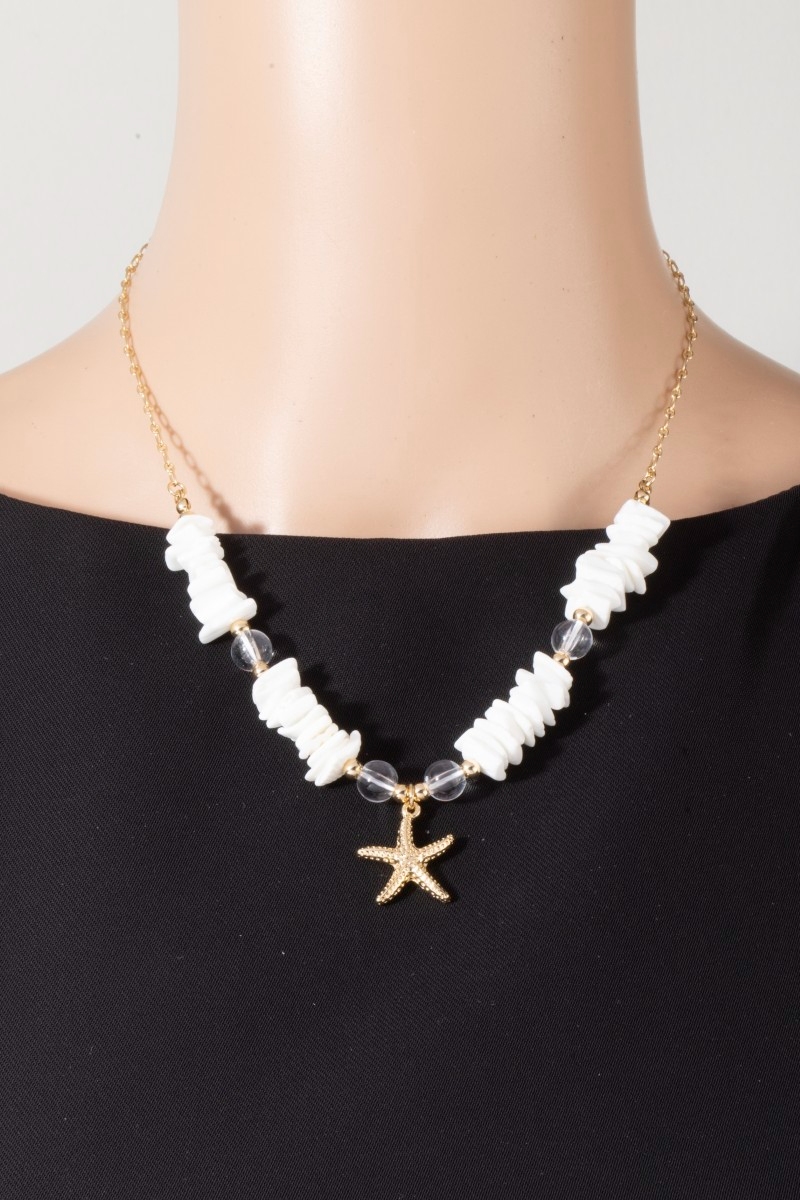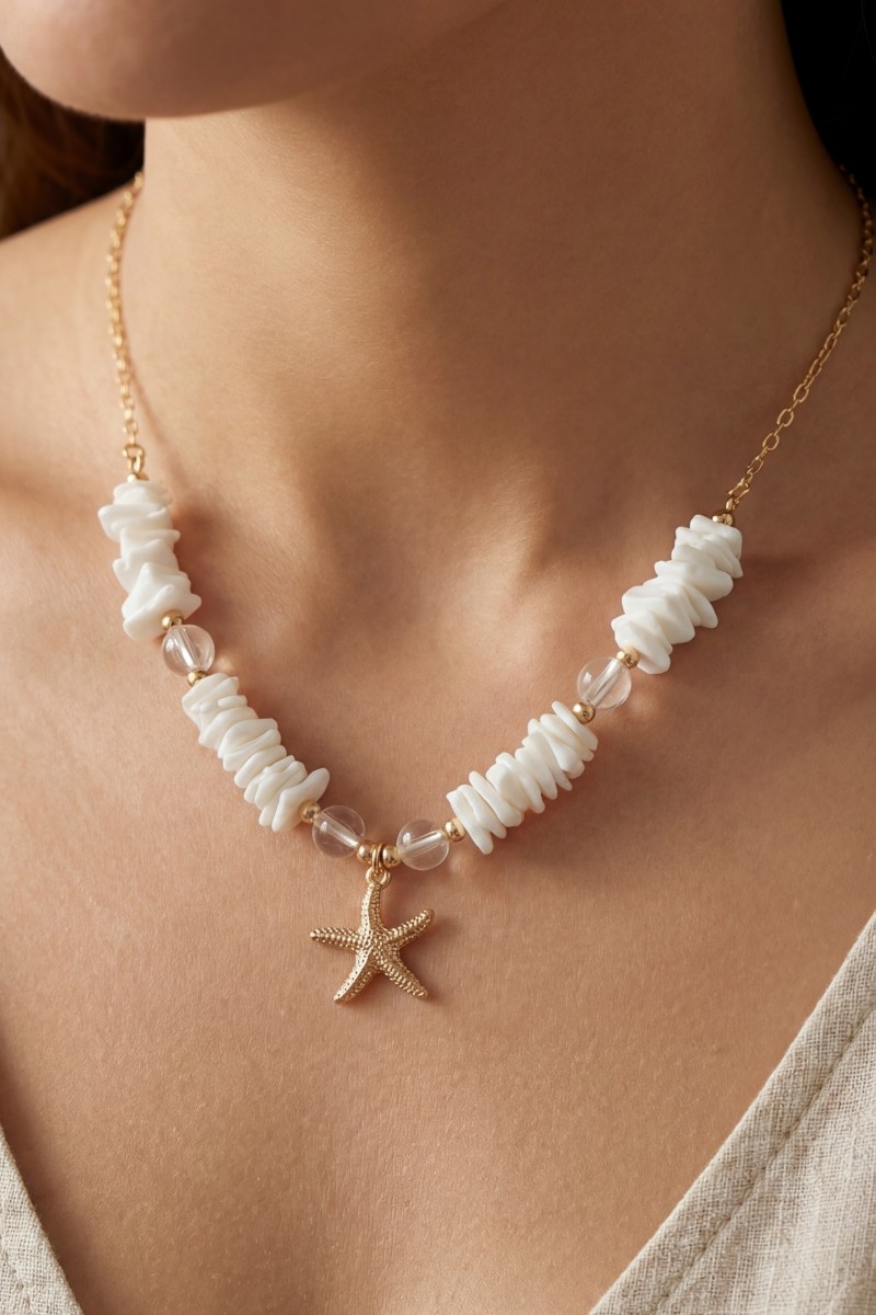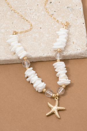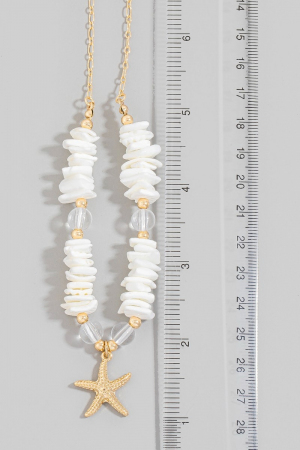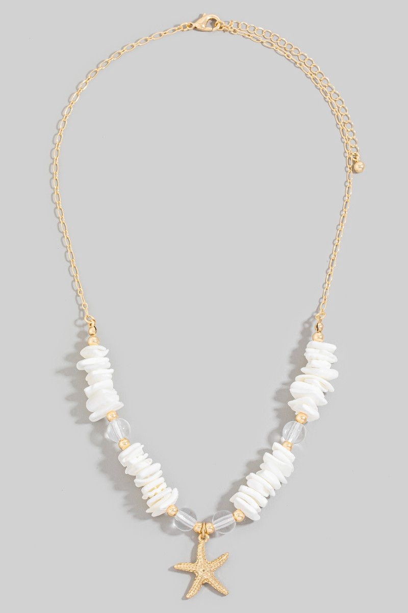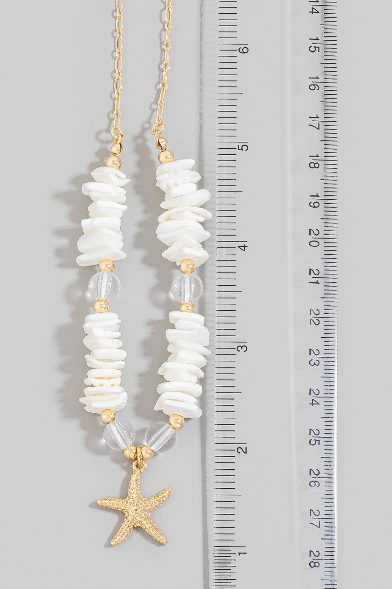 • This pendant necklace features a fashionable starfish pendant chip shell beaded necklace style. Elevate your ensemble with this chic, timeless pendant necklace.