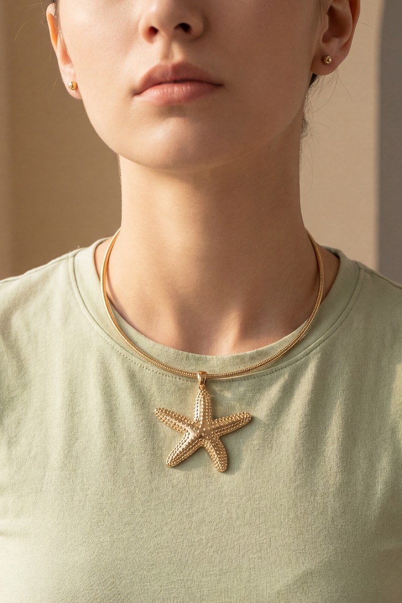 - This necklace displays a fashionable starfish pendant choker style. Elevate your ensemble with this chic, timeless necklace.