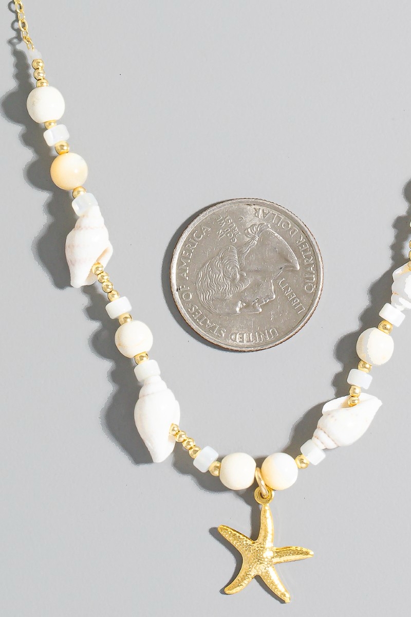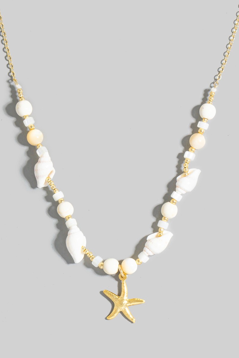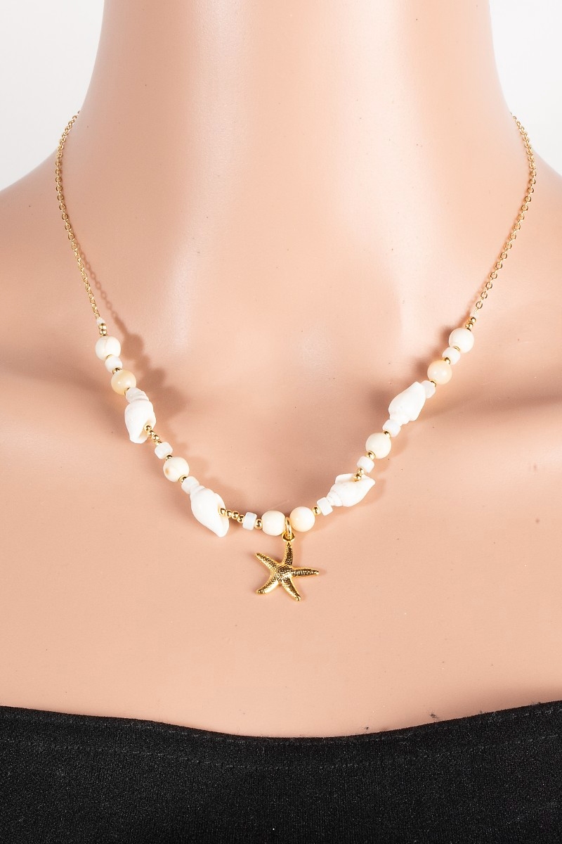 - This chain necklace introduces a stunning starfish pendant and conch shell beads style. Delight in the nuanced details that make this chain necklace a testament to fine design and impeccable taste.