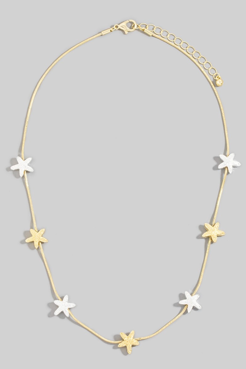 • This chain necklace brings a unique starfish station charms style. Celebrate the art of accessorizing with this piece that effortlessly encapsulates modern trends.