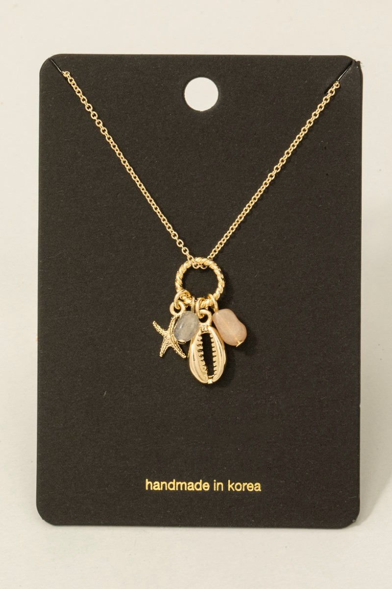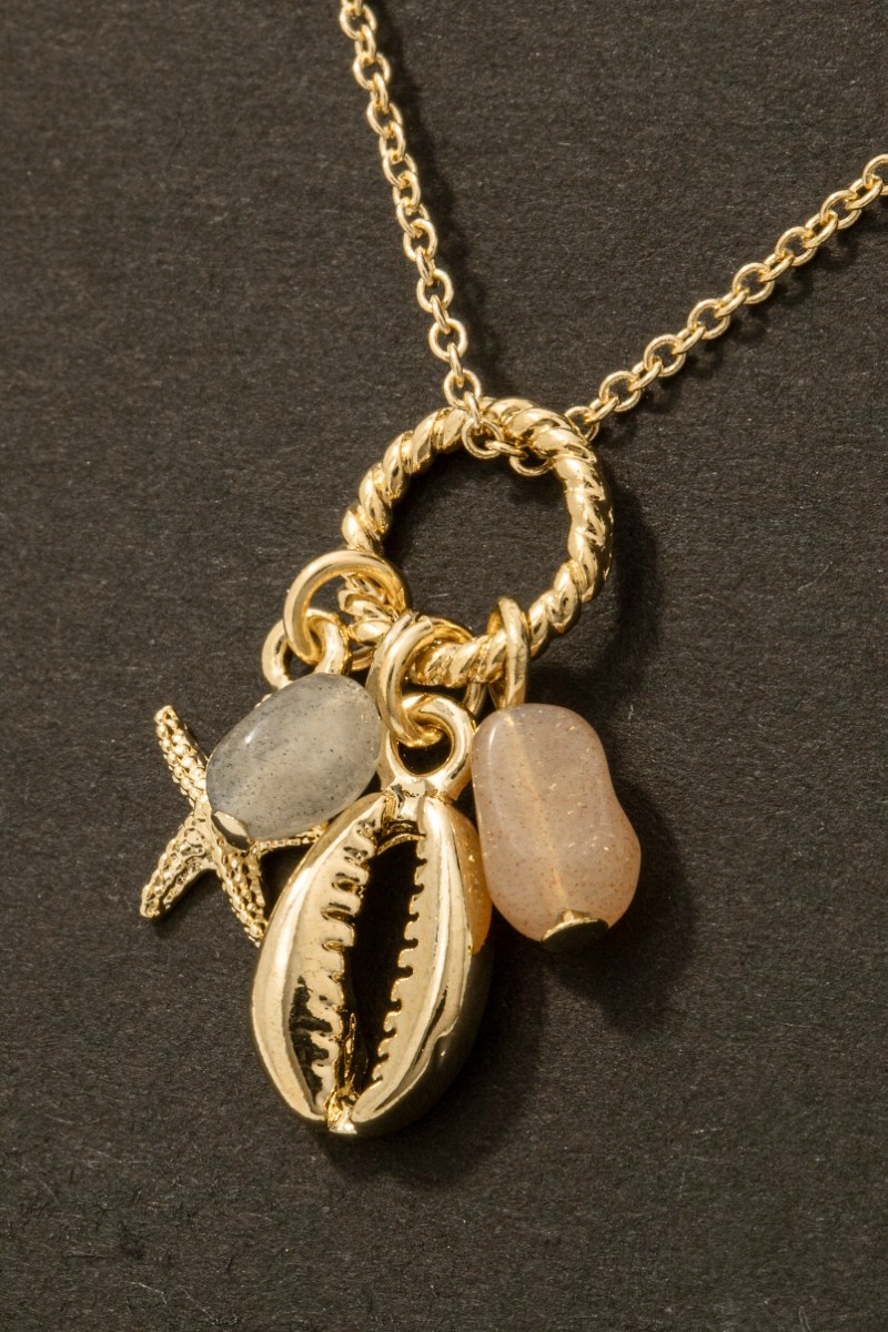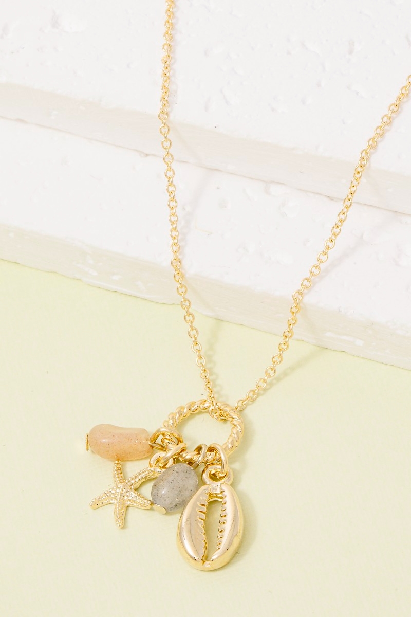 • This necklace brings a stunning stone and sea life charms pendant style. Experience a subtle blend of modernity and classic charm as this necklace effortlessly adorns your ensemble.