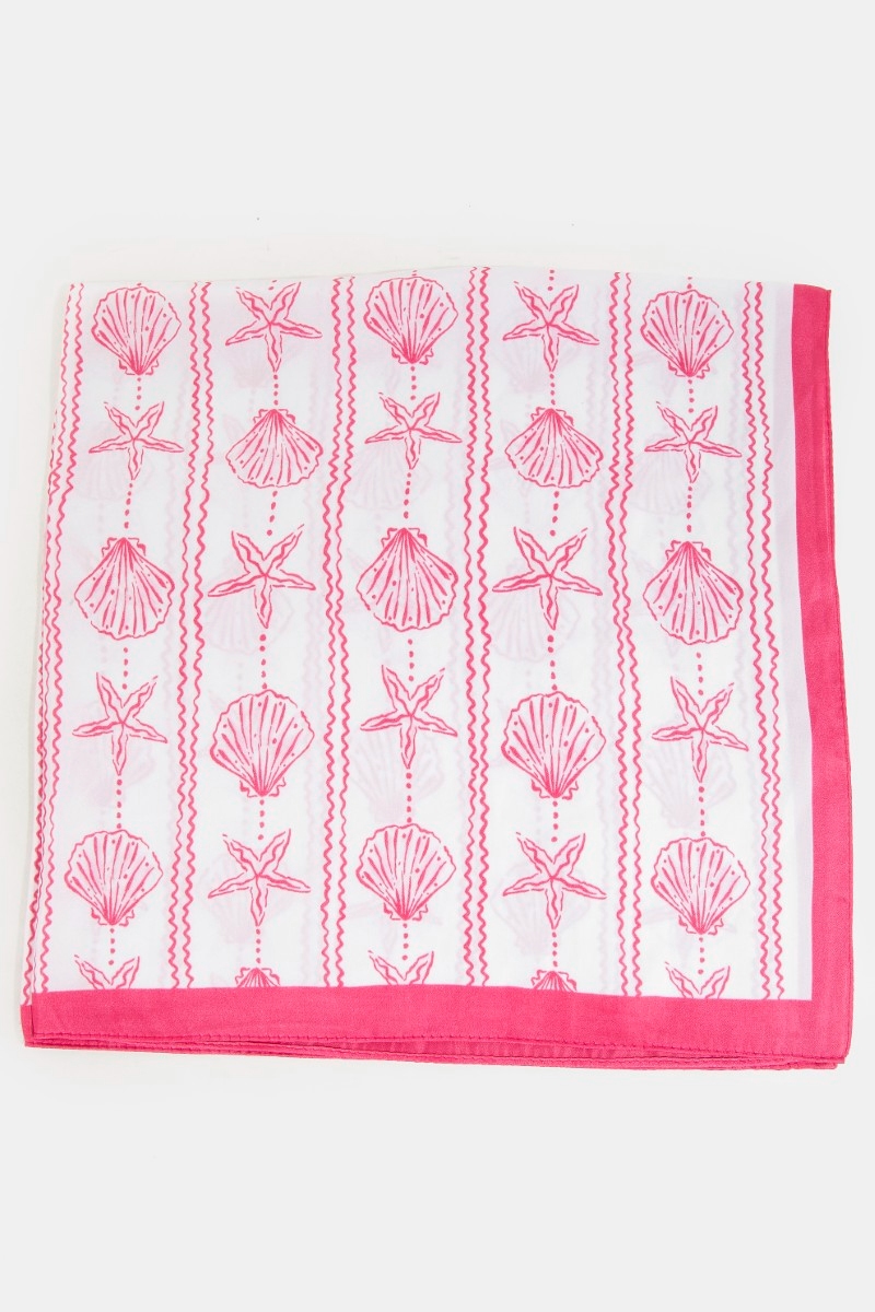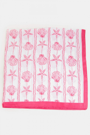 • This scarf introduces a stunning sealife seashells and starfish bandana style. Celebrate individuality with this scarf that effortlessly expresses your unique sense of style.