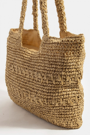• Shell Beaded Accent Paper Woven Envelope Clutch Bag