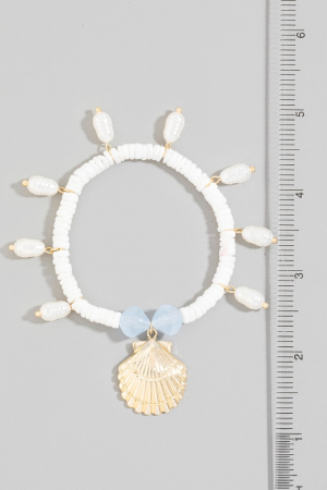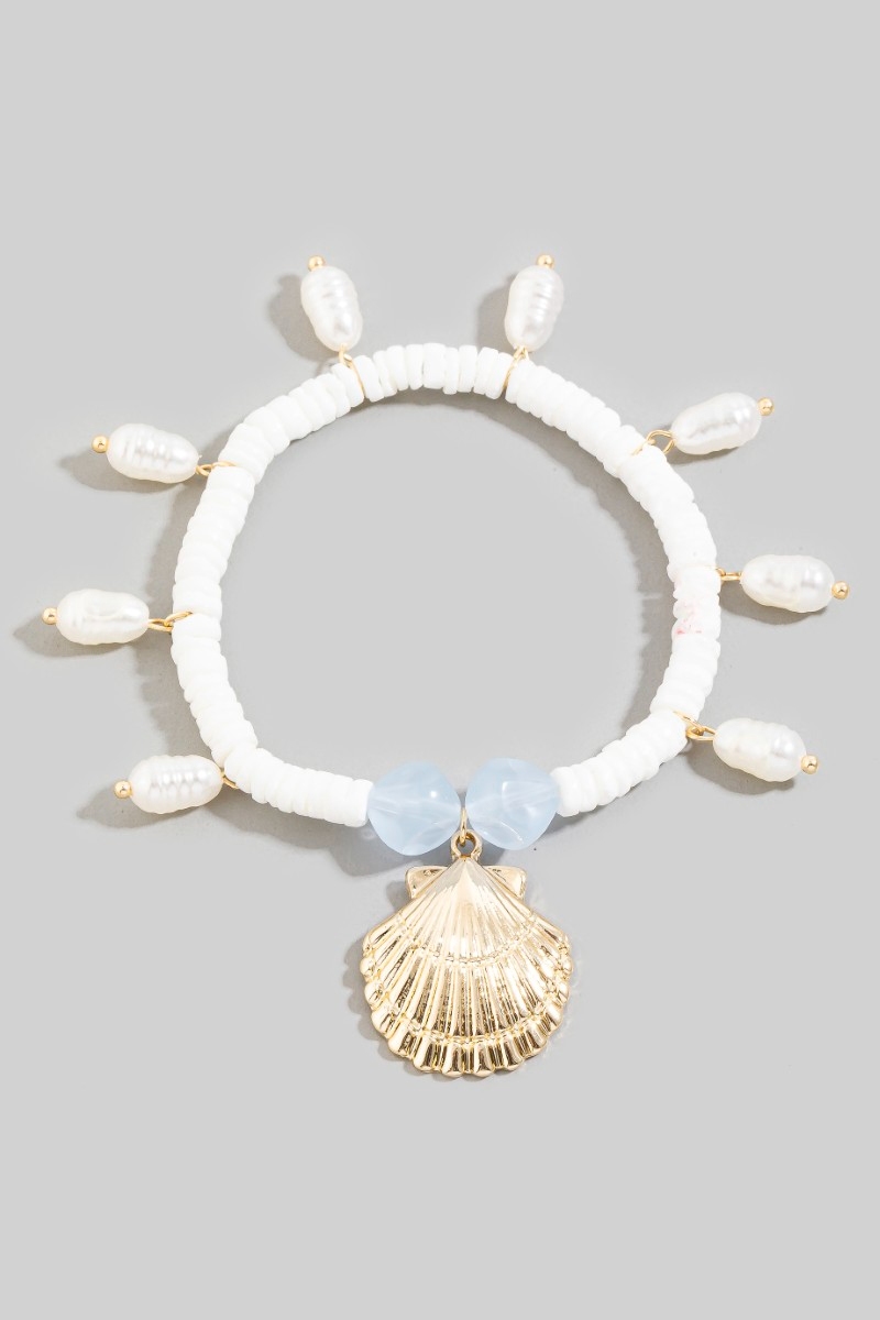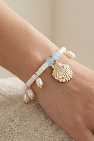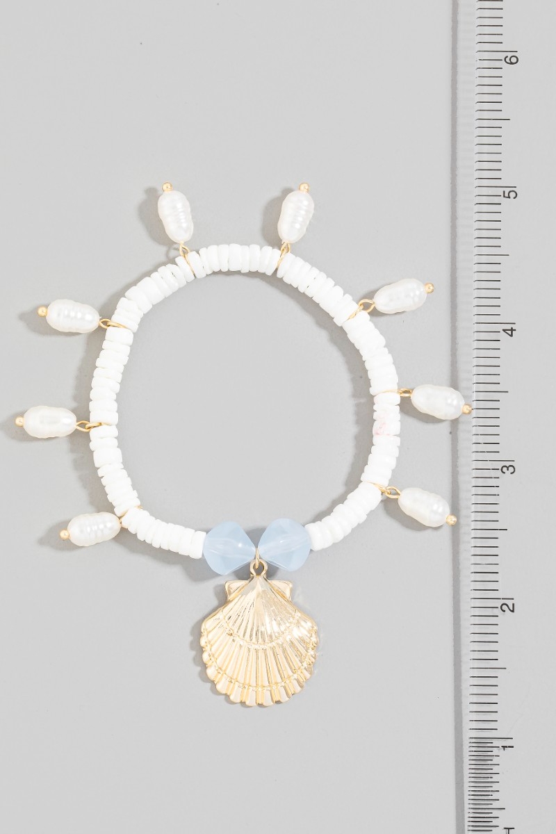 • This bracelet brings a unique seashell pearl charms style. Immerse yourself in the details of design, as this bracelet effortlessly becomes a conversation starter.