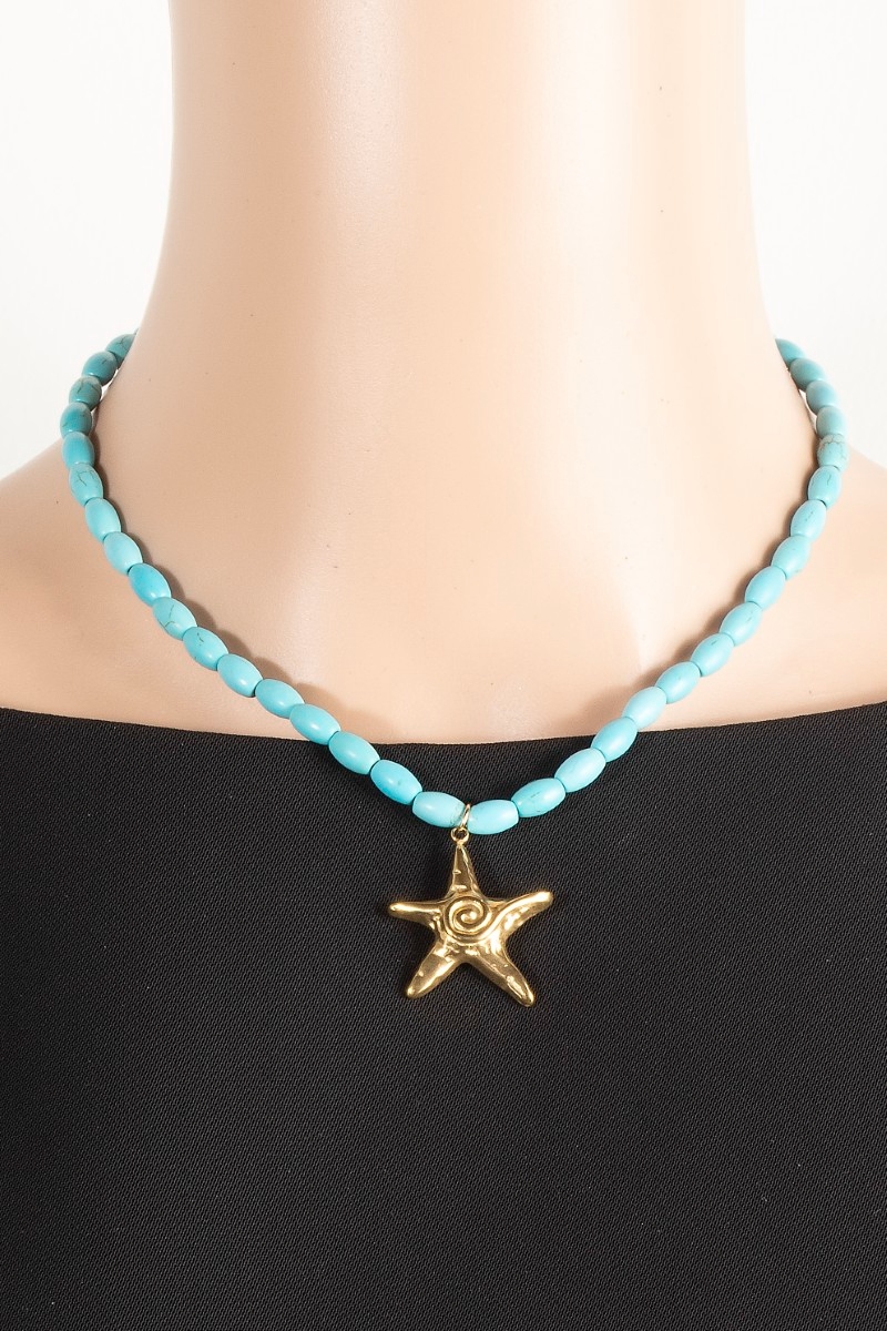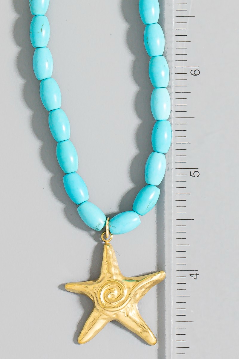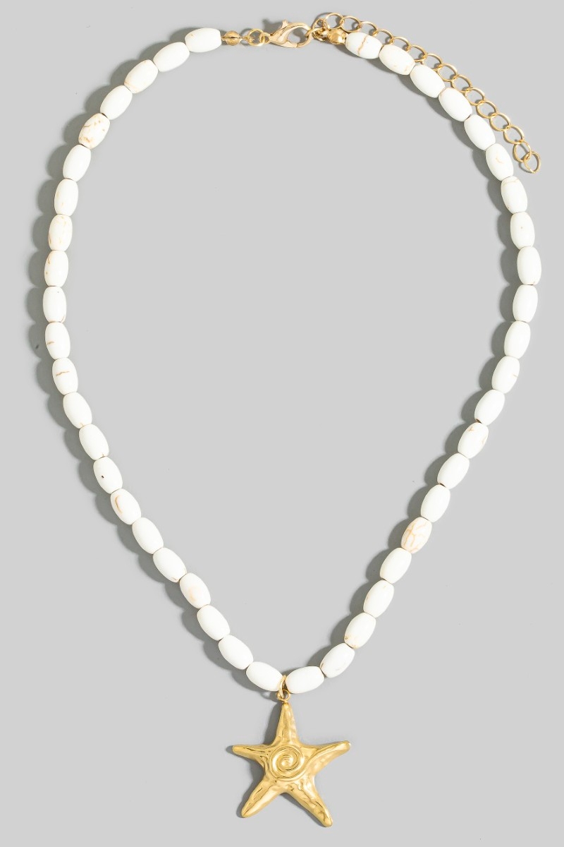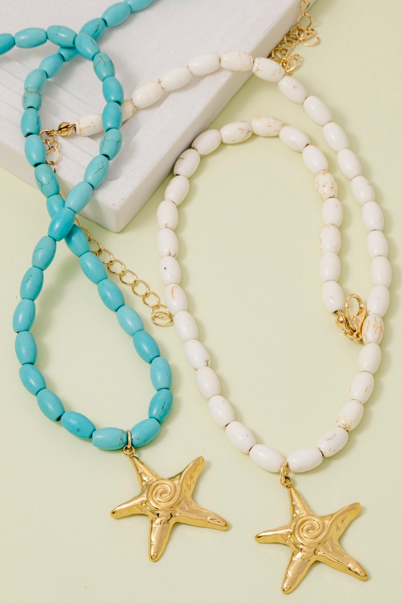 - This necklace displays a vibrant swirl starfish pendant oval beaded style. Experience the joy of accessorizing with this piece that effortlessly combines versatility and charm.