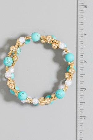 • Stone Metallic And Pearl Beaded Bracelet Set