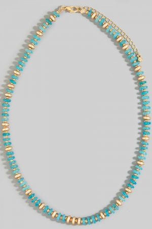 • Stone And Metallic Tube Beaded Layered Chain Necklace