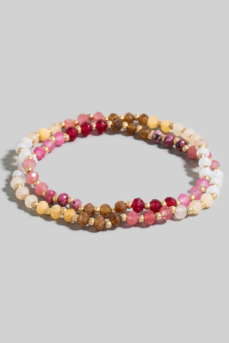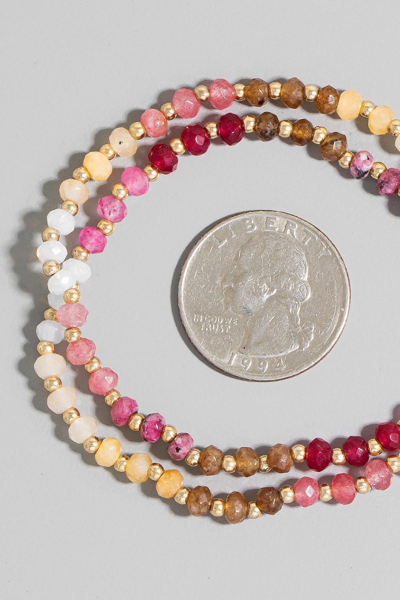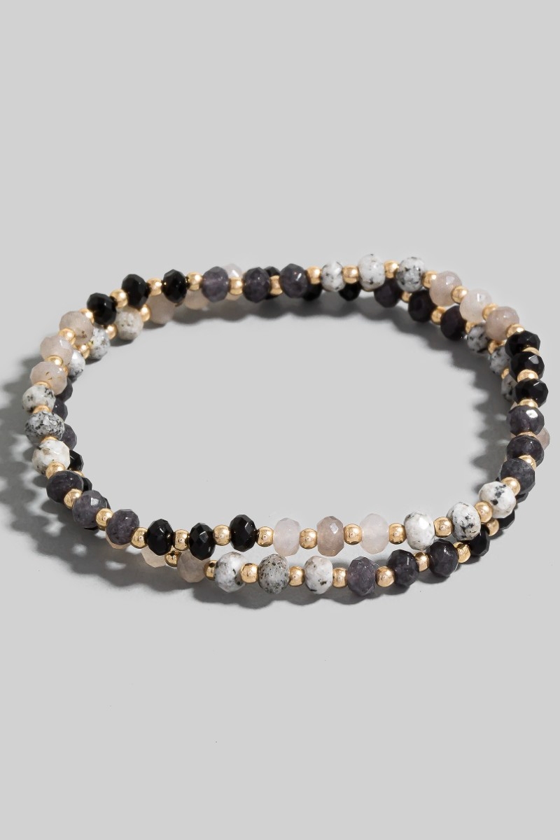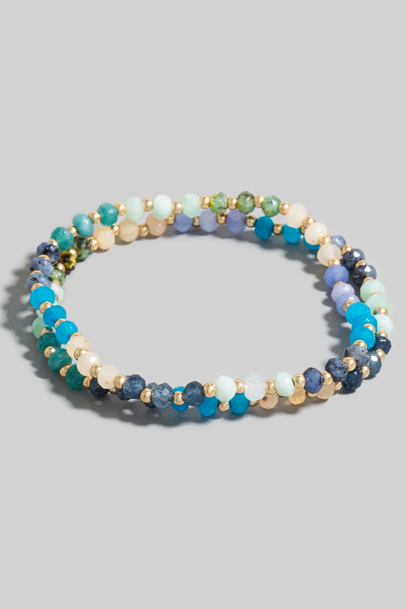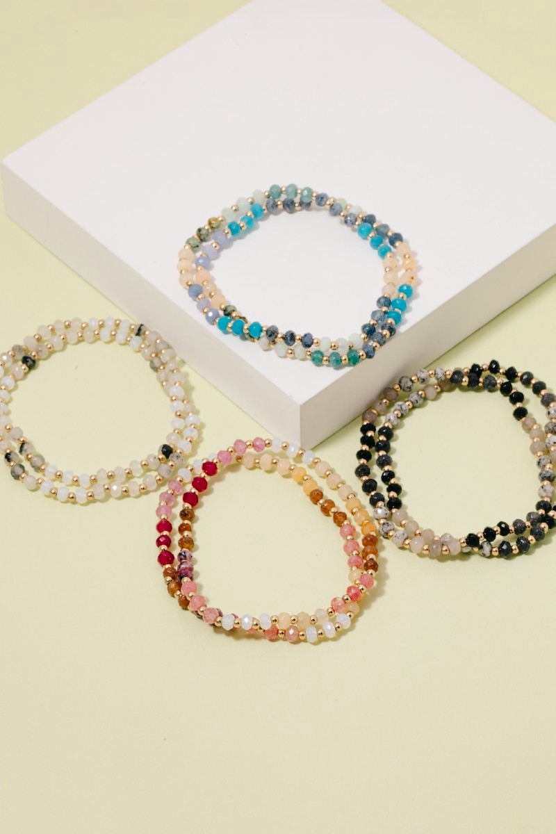 - This bracelet adds a modern semi precious faceted stone beaded style. Experience the joy of accessorizing with this piece that effortlessly combines versatility and charm.
