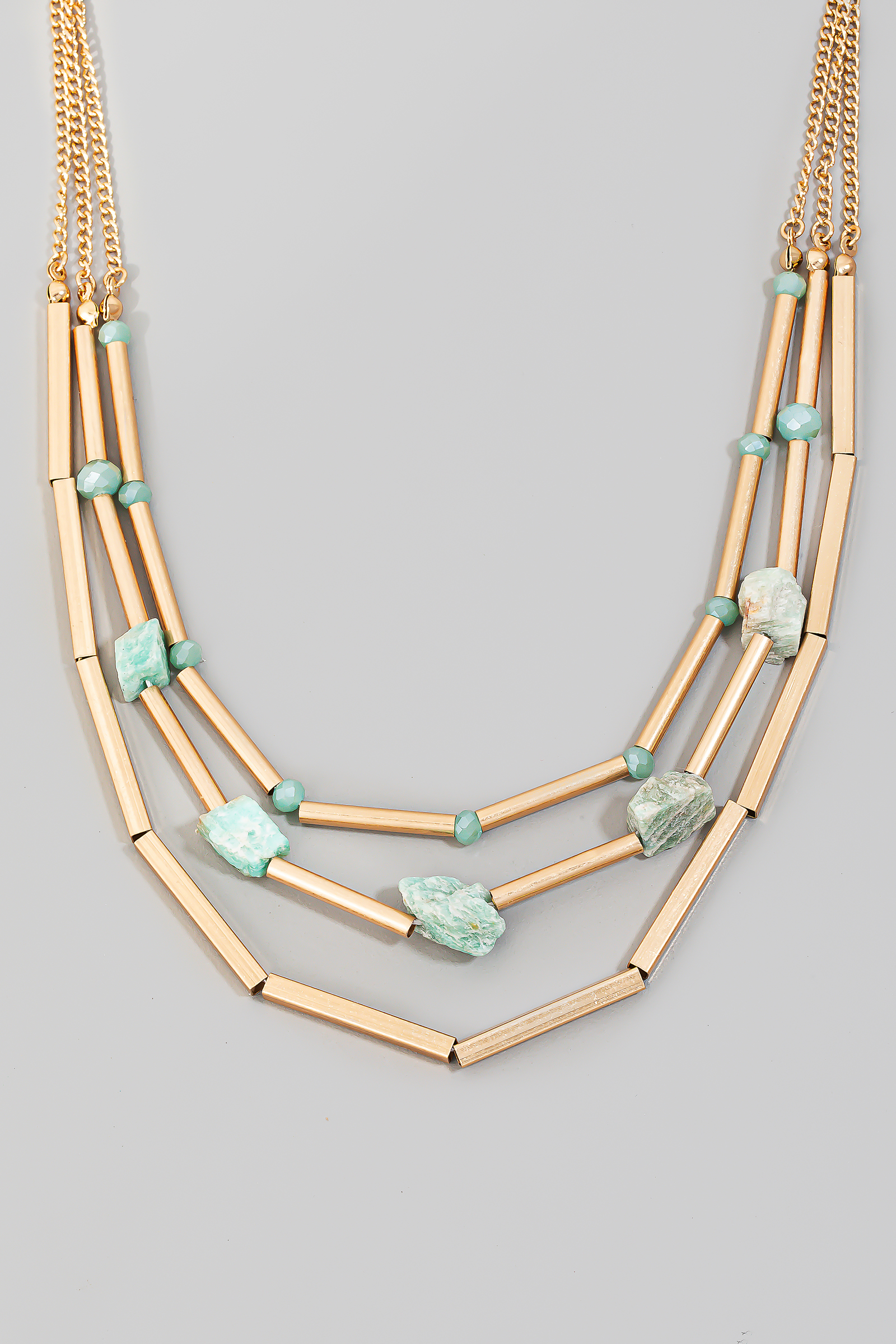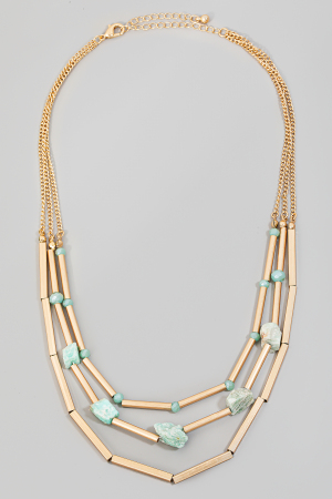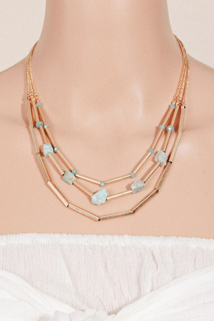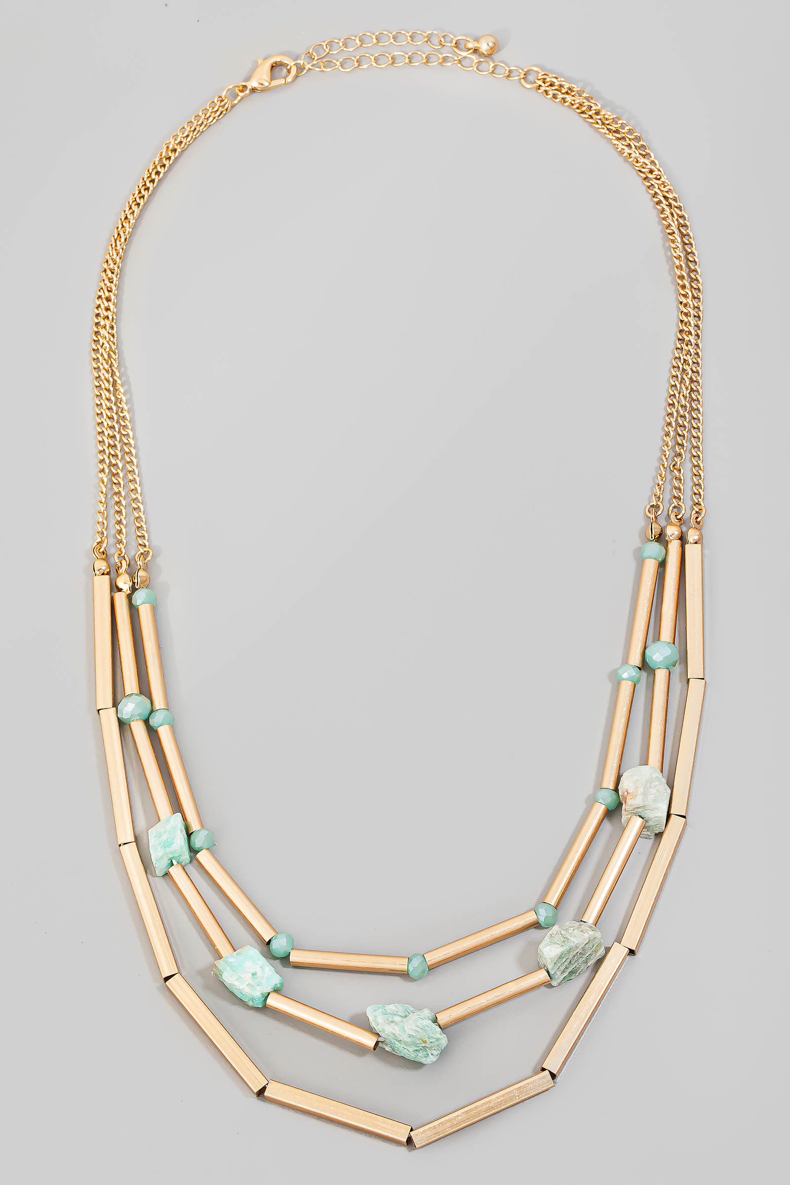 - This chain necklace brings a unique stone and metallic tube beaded layered style. Celebrate individuality with this accessory that effortlessly expresses your unique sense of style.