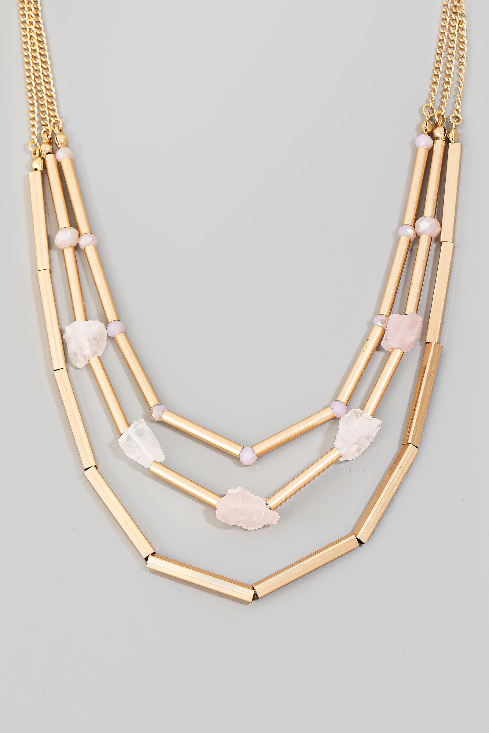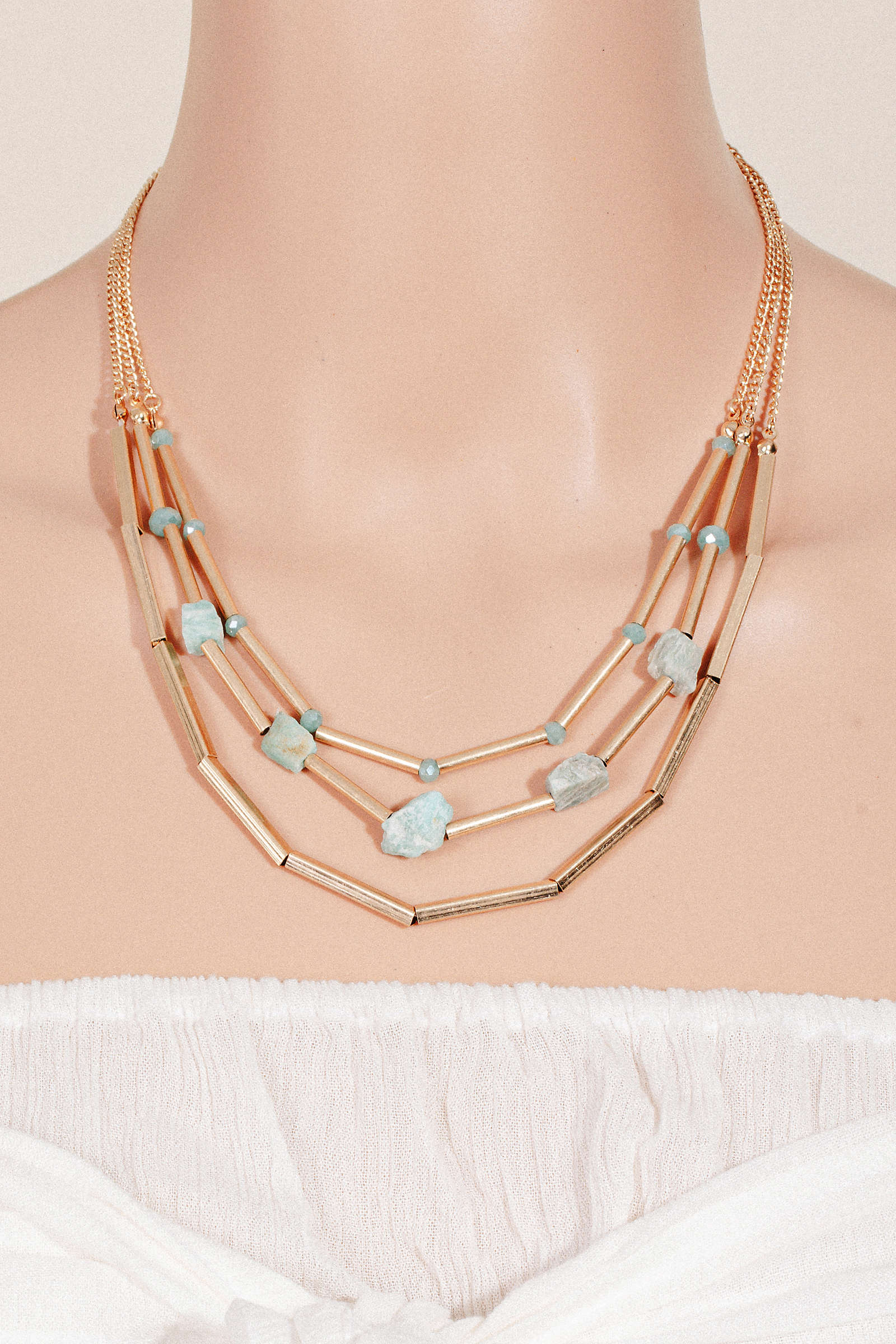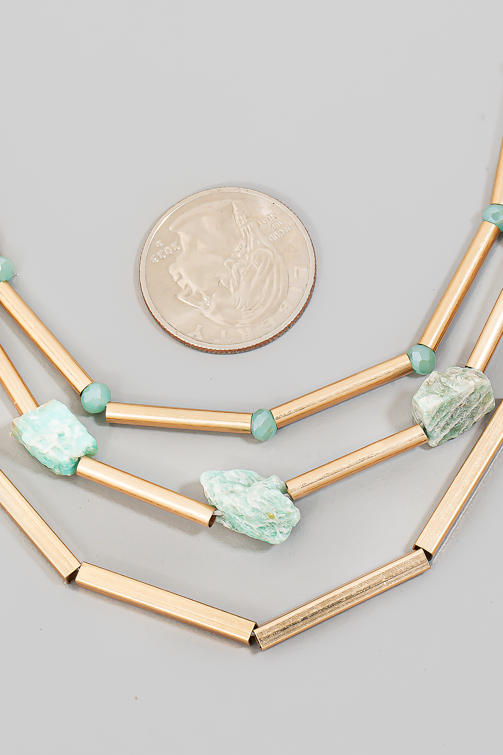 - This chain necklace brings a unique stone and metallic tube beaded layered style. Celebrate individuality with this accessory that effortlessly expresses your unique sense of style.