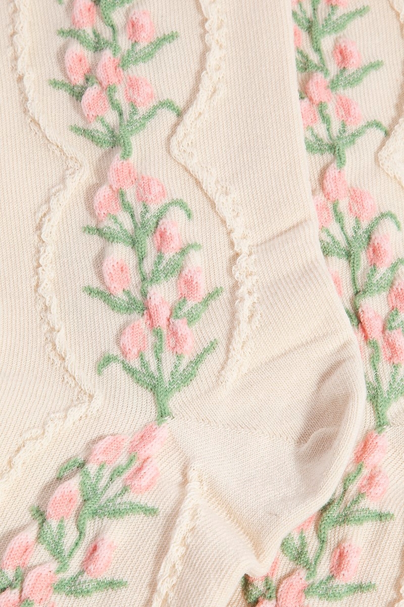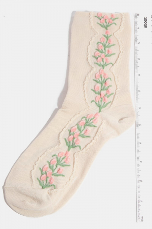 - This pair of socks brings a luxurious beige floral tulip vine embroidered style. Indulge in the artistry of accessorizing with this unique piece.