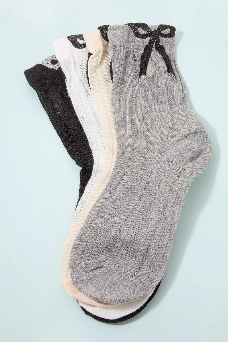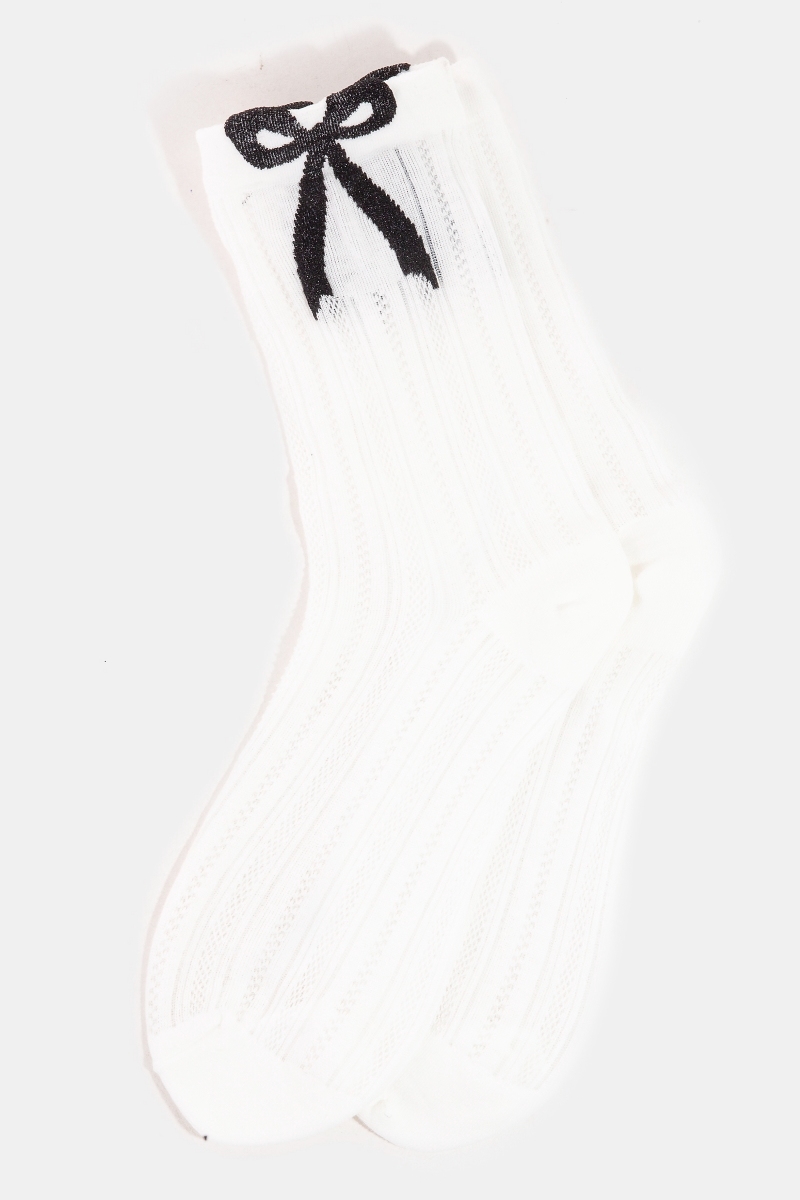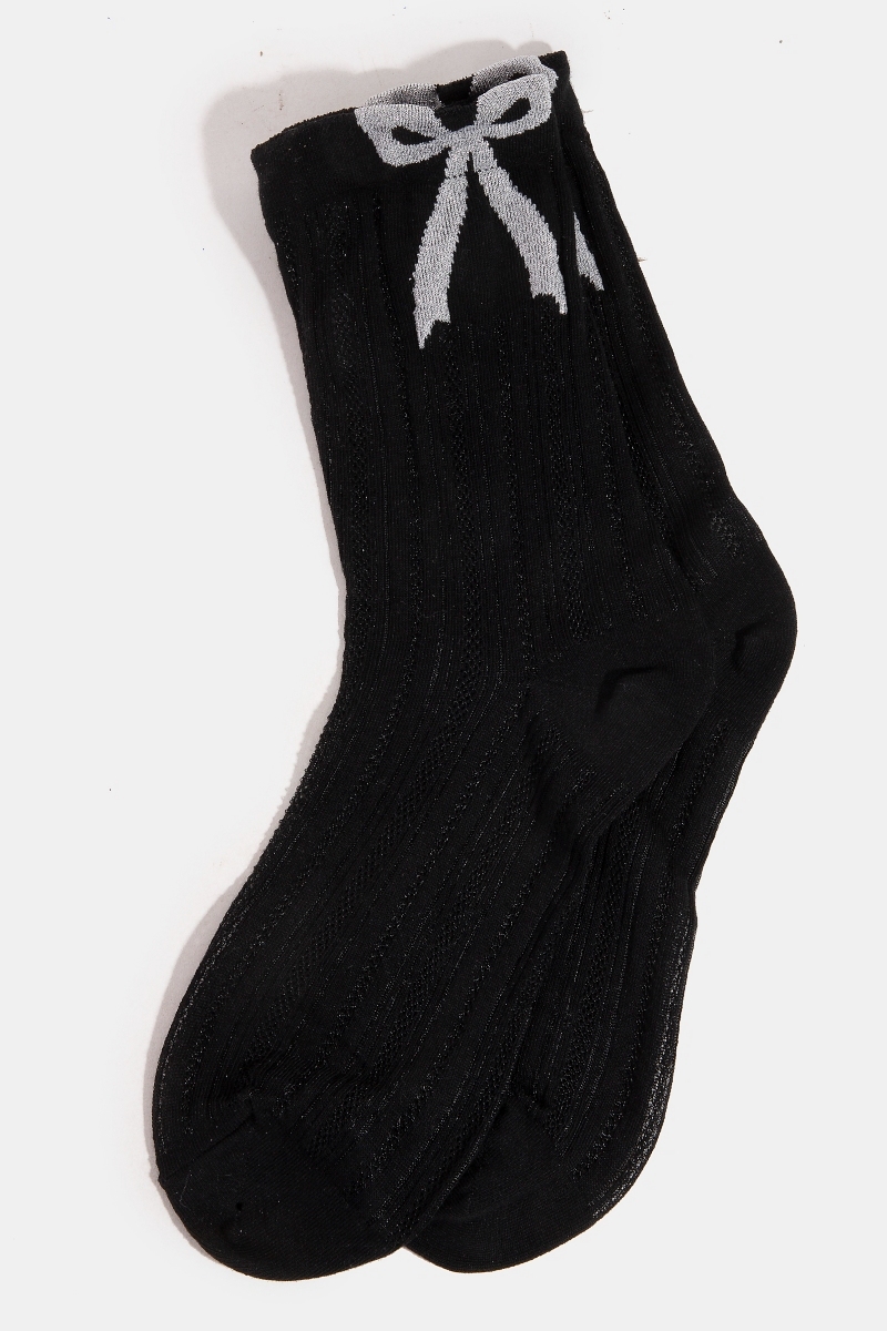 • This pair of socks showcases a timeless embroidered ribbon bow socks style. Discover the perfect balance of subtlety and flair as this pair of socks effortlessly completes your look.