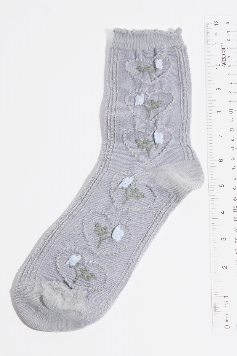 • This pair of socks showcases a unique gray heart flower embroidered socks style. Experience the joy of accessorizing with this piece that effortlessly combines versatility and charm.
