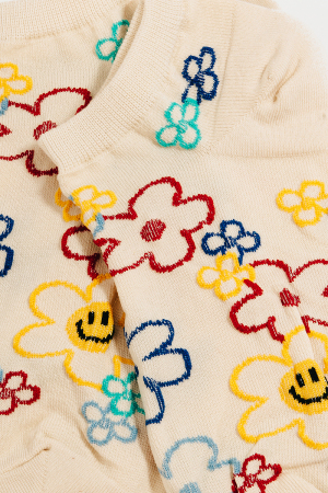 - This sock features a fashionable ivory floral outline print low rise s style. Explore a refined sense of style with this accessory, seamlessly elevating the chic factor of your look.