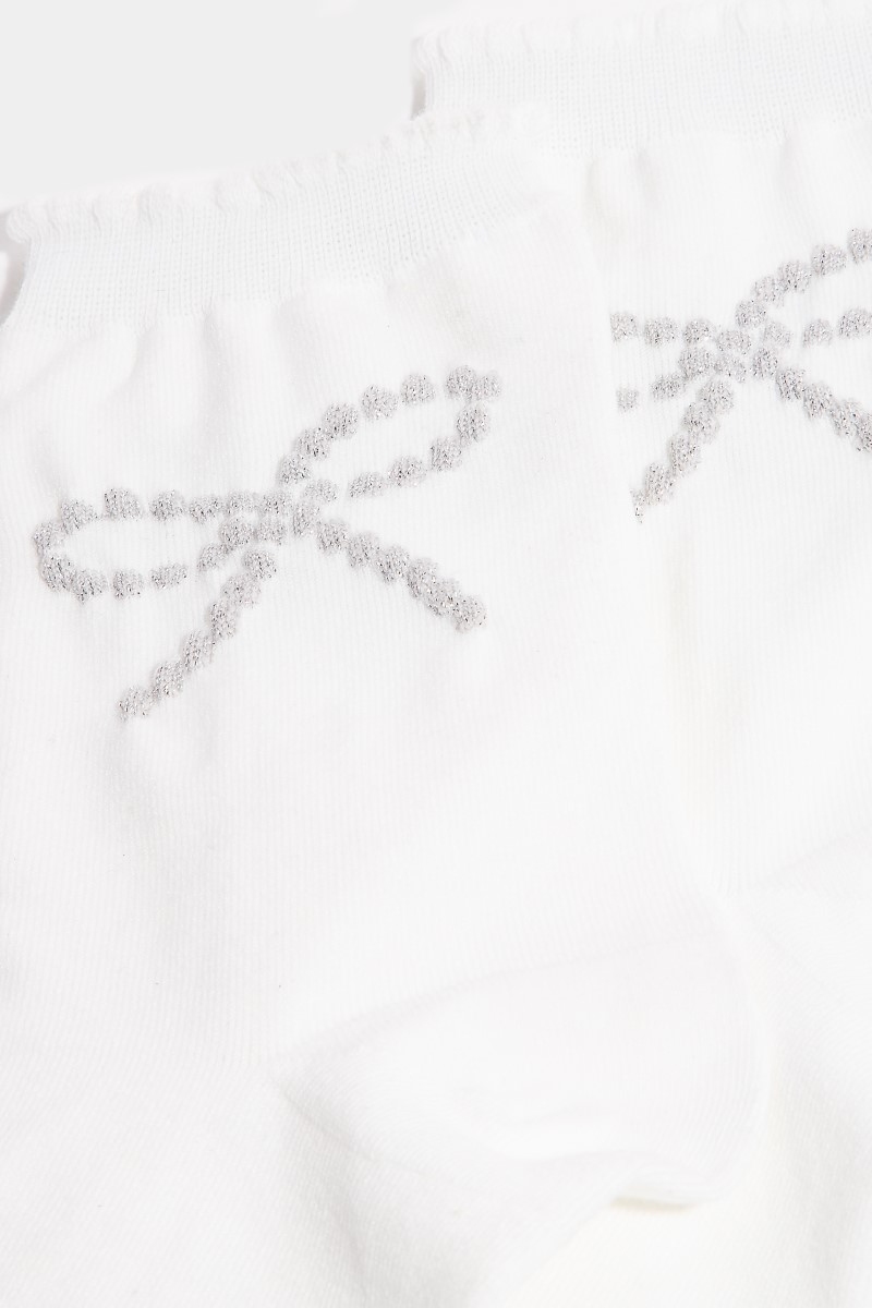 - This pair of socks displays a fashionable silver glitter ribbon embroidered white style. Embark on a journey of sartorial refinement as this pair of socks effortlessly complements your fashion sense.