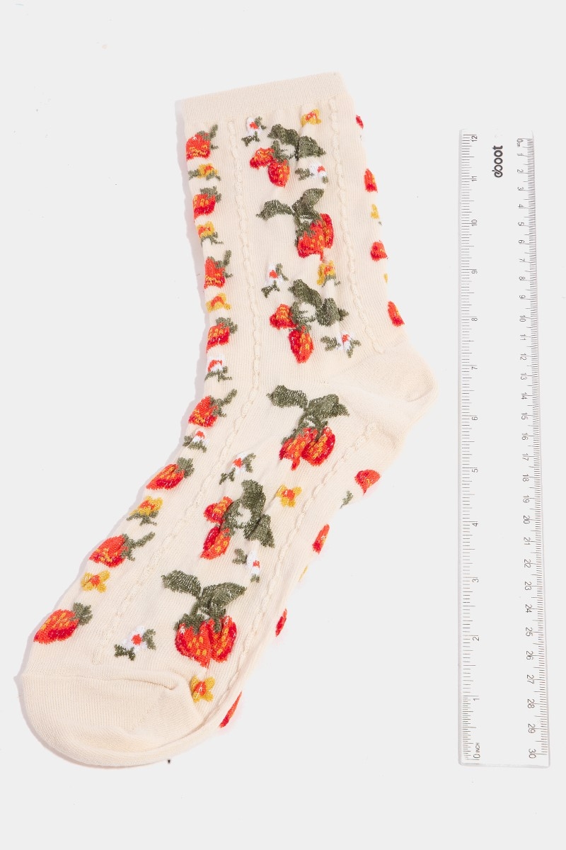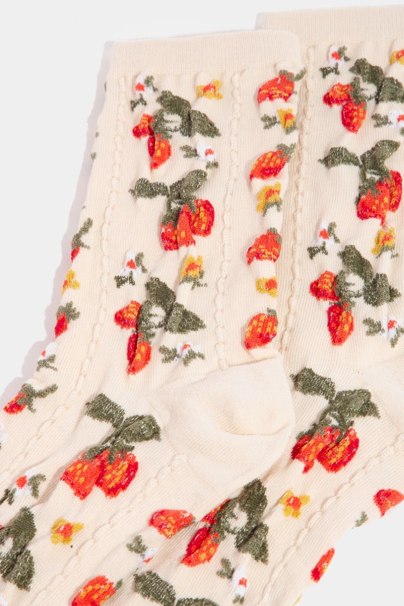 - This pair of socks features a fashionable strawberries and flowers embroidered beige style. Delight in the nuanced details that make this pair of socks a testament to fine design and impeccable taste.