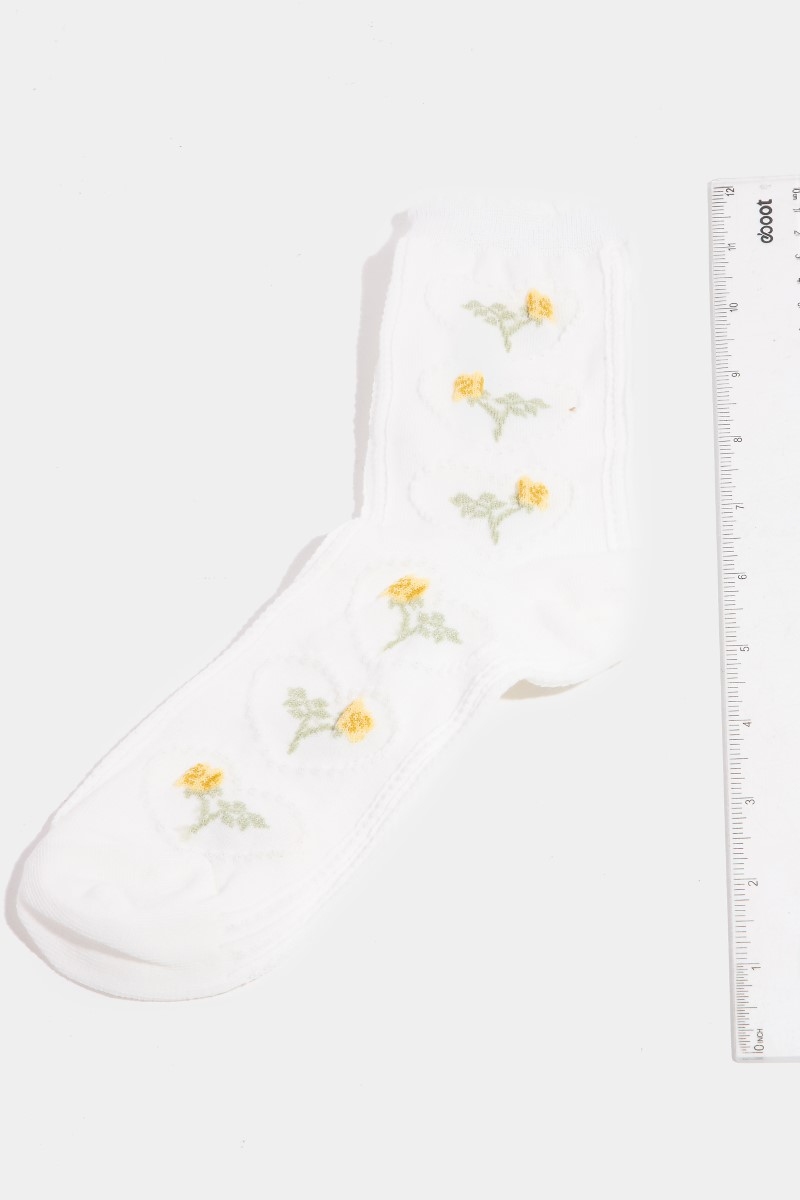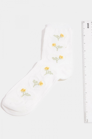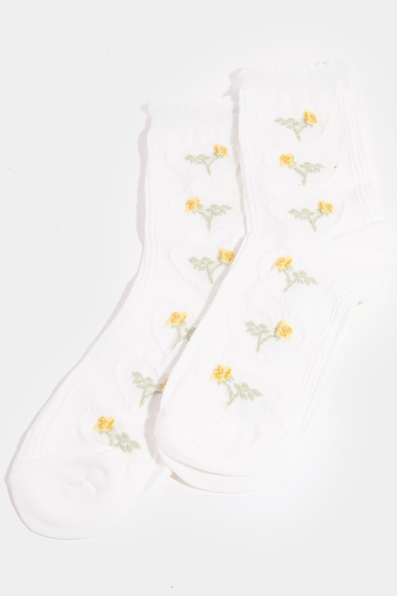 - This pair of socks showcases a timeless yellow embroidered flowers white style. Experience the joy of accessorizing with this piece that effortlessly combines versatility and charm.