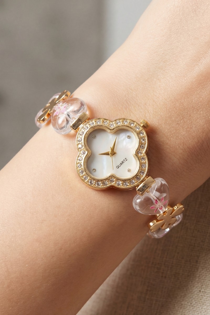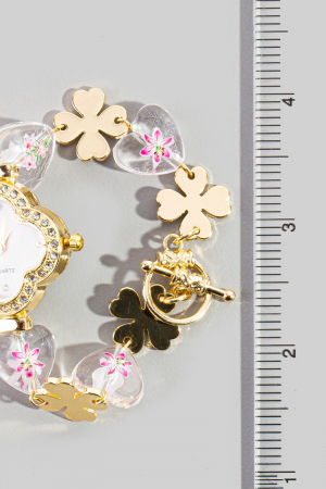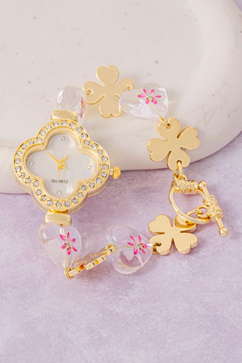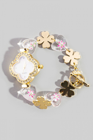 - This bracelet displays a fashionable clover & heart cubic zirconia watch style. Experience a burst of creativity in accessorizing as this piece effortlessly sets the tone for your unique style.