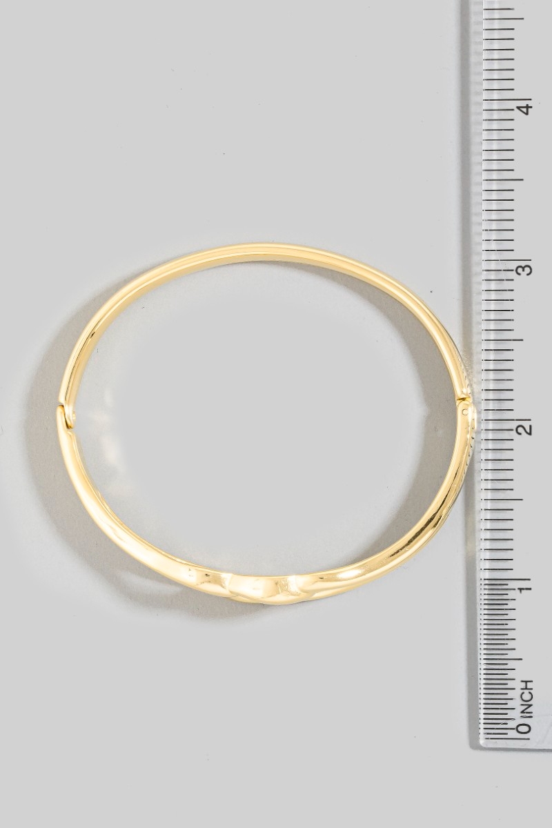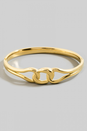 • This bangle bracelet introduces a unique stainless steel loop knot hinge style. Redefine your look effortlessly with this standout, on-trend piece.