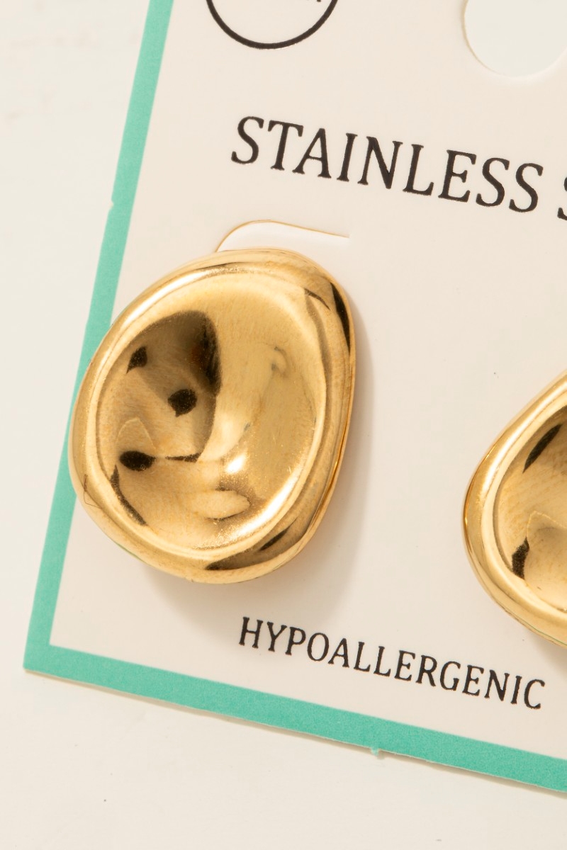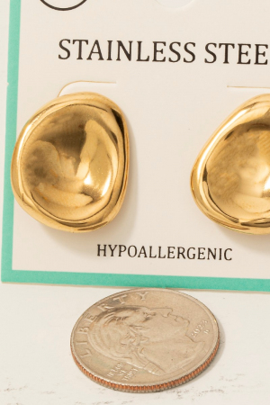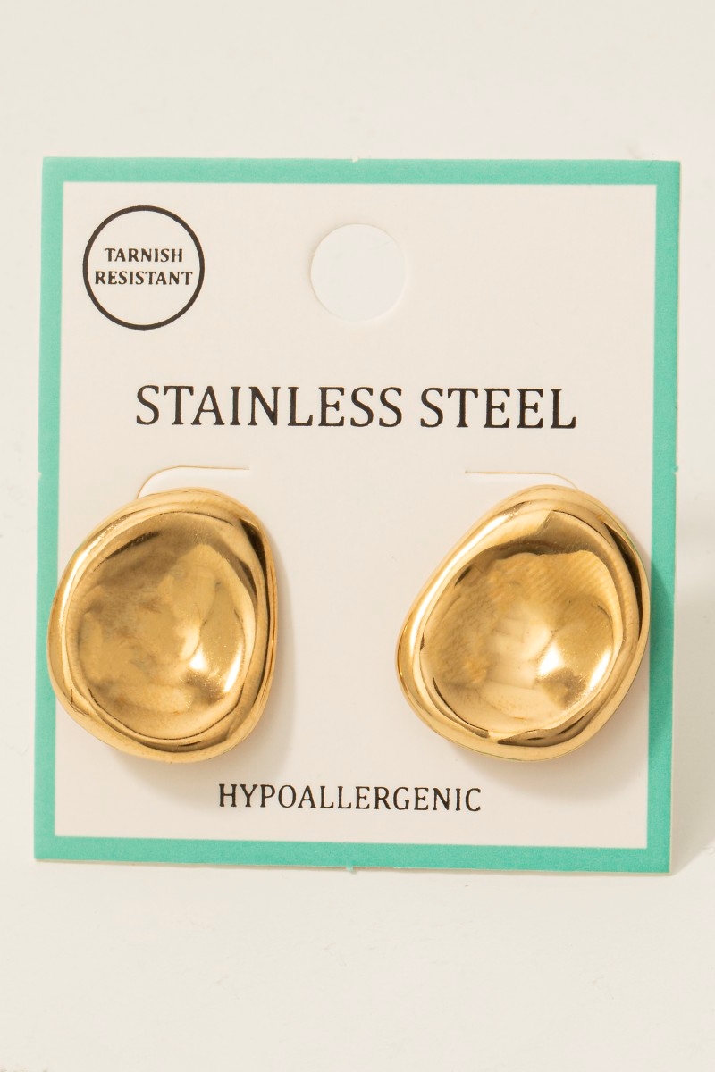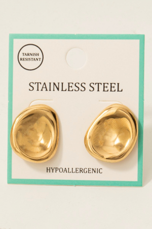 - This pair of stud earrings showcases a timeless stainless steel oval bowl shield style. Unveil modern elegance with this subtly intricate pair of stud earrings.