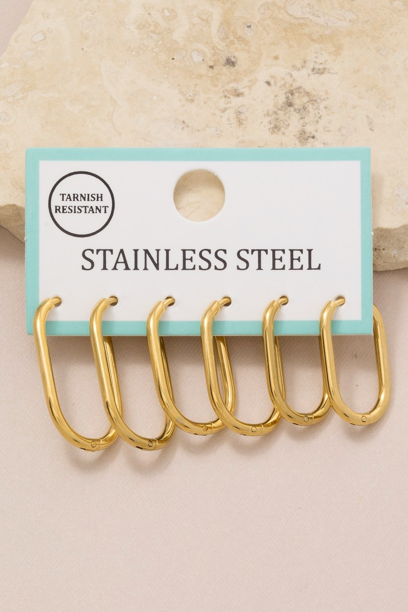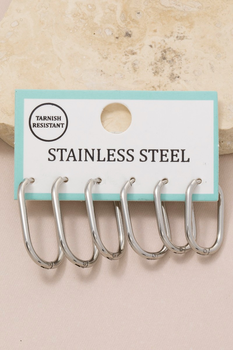 Stainless Steel Rectangle Hoop Earrings