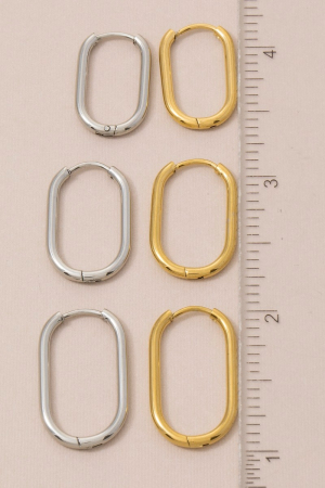 • This pair of hoop earrings showcases a unique stainless steel oval hinge set style. Celebrate the art of accessorizing with this piece that effortlessly encapsulates modern trends.