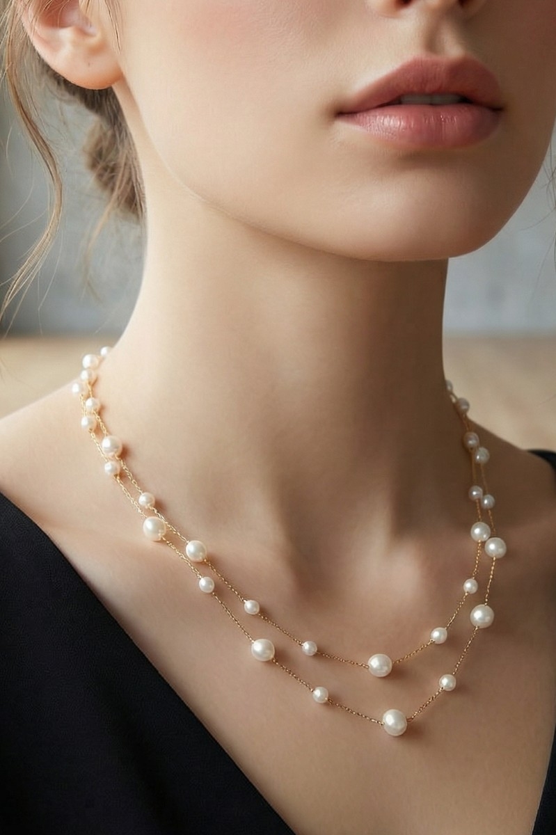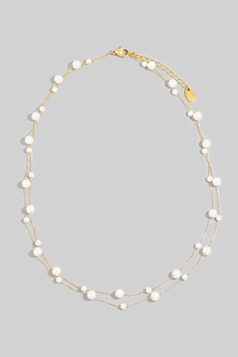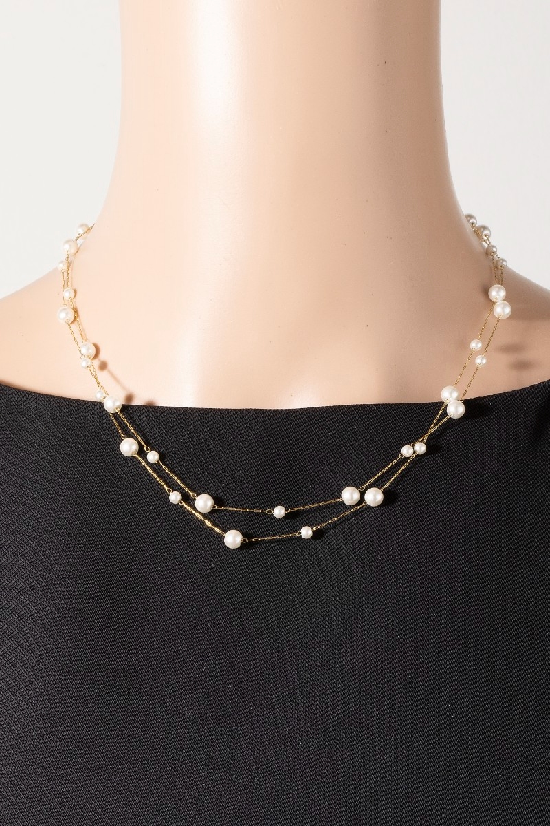 • This chain necklace brings a luxurious stainless steel pearl station beads layered style. Savor the allure of detailed craftsmanship in this exquisite chain necklace.
