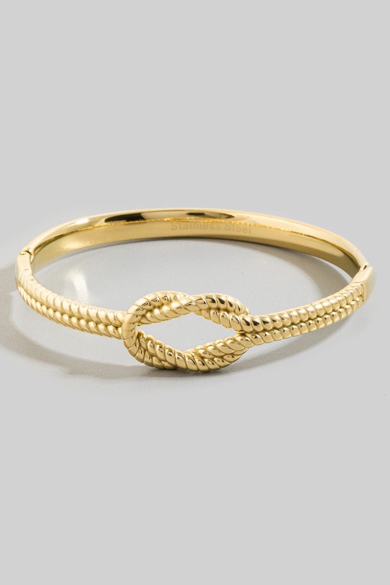 - This bangle bracelet brings a luxurious stainless steel rope knot hinge style. Savor the craftsmanship that goes beyond the ordinary, as this bangle bracelet effortlessly captivates attention.
