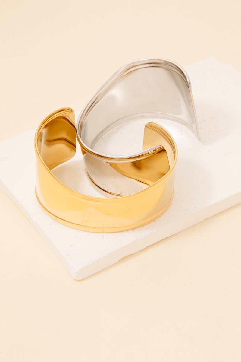 - This cuff bracelet introduces a stunning stainless steel wide style. Unveil a new dimension of sophistication as this cuff bracelet effortlessly enhances the elegance of your ensemble.