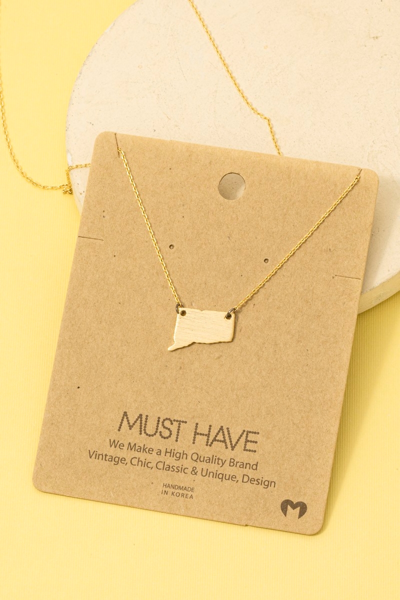 • This trending necklace showcases a timeless connecticut state pendant necklace style. Delight in the nuanced details that make this trending necklace a testament to fine design and impeccable taste.