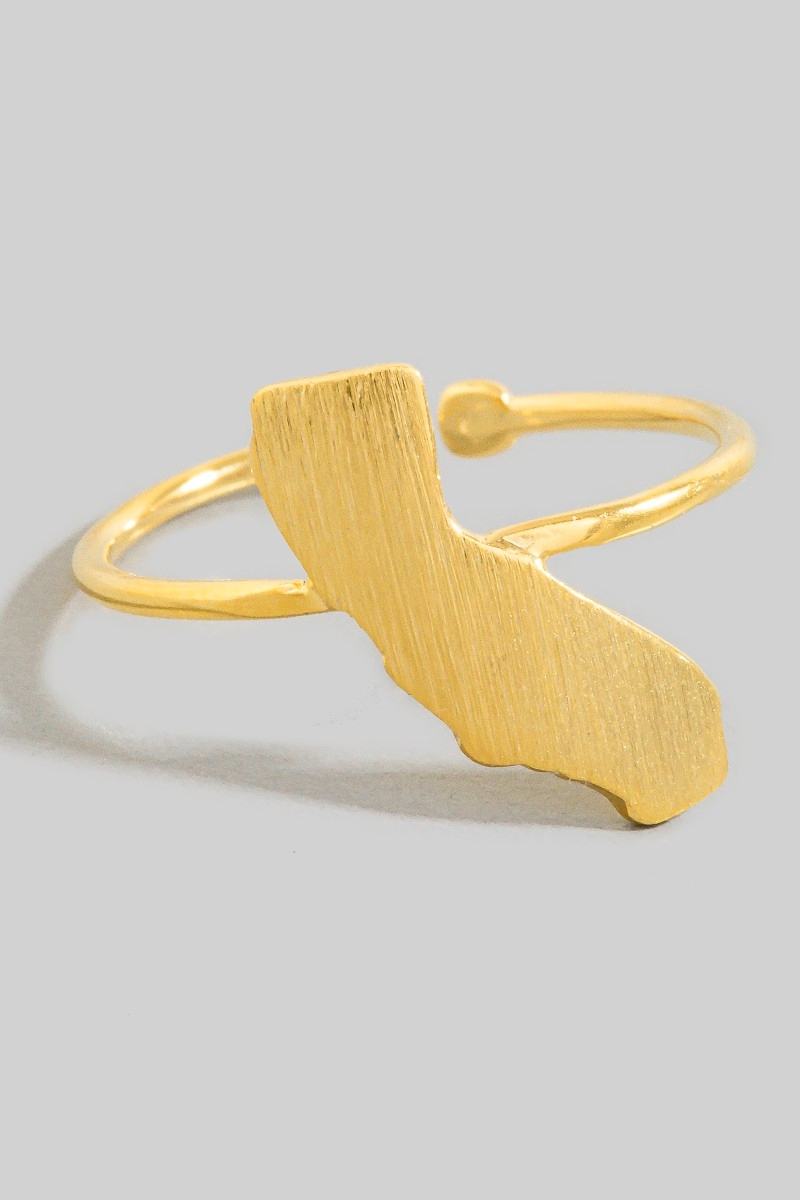 - This ring brings a stunning gold dipped delicate california state style. Indulge in the allure of exquisite craftsmanship as this ring effortlessly adds a touch of luxury to your attire.