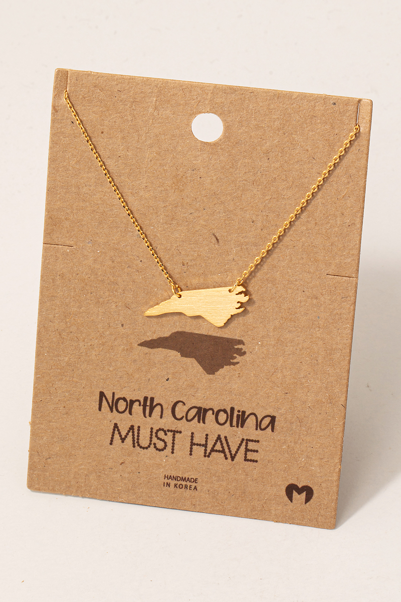 • This trending necklace showcases a unique north carolina state pendant necklace style. Unveil modern elegance with this subtly intricate trending necklace.